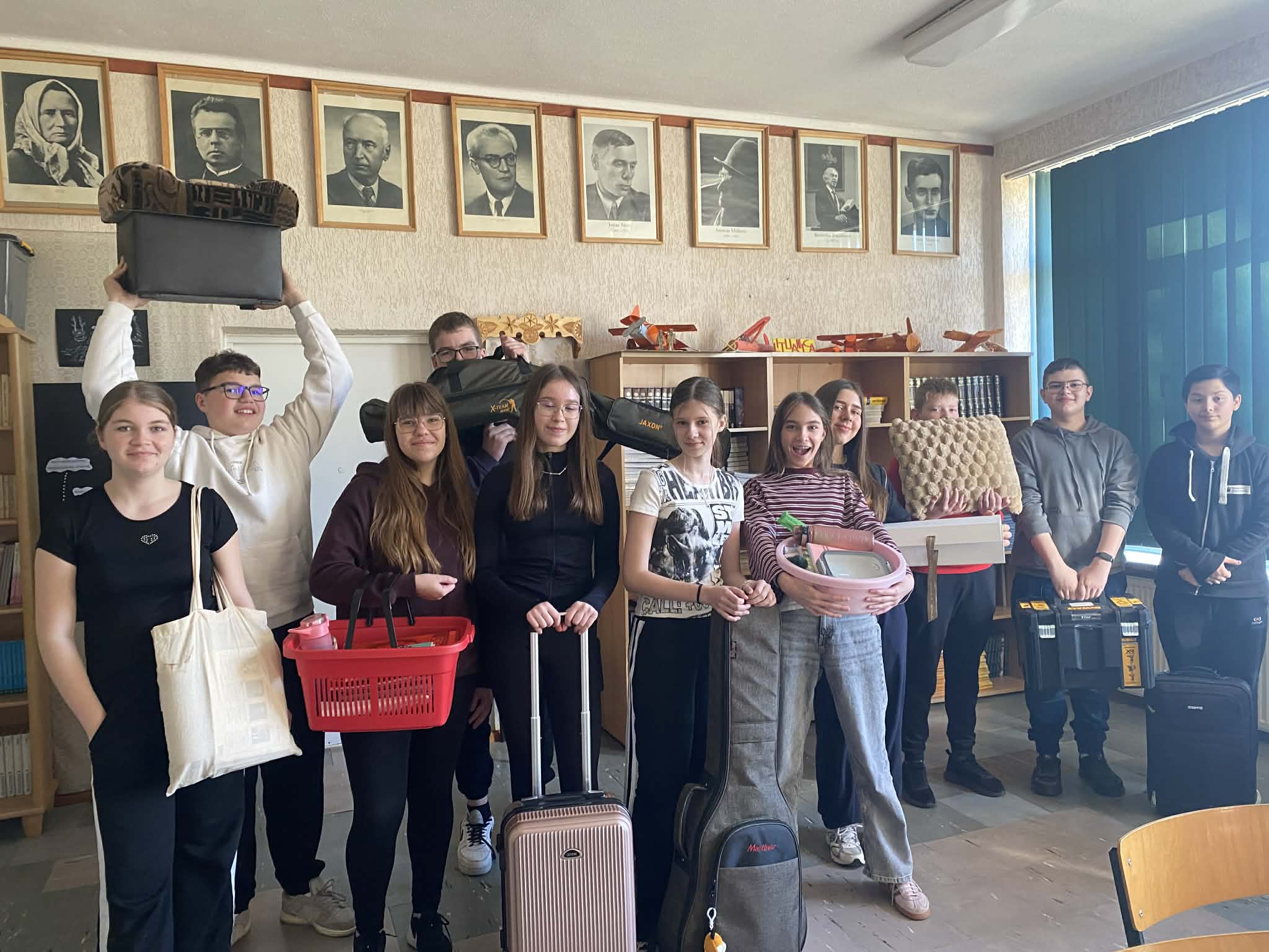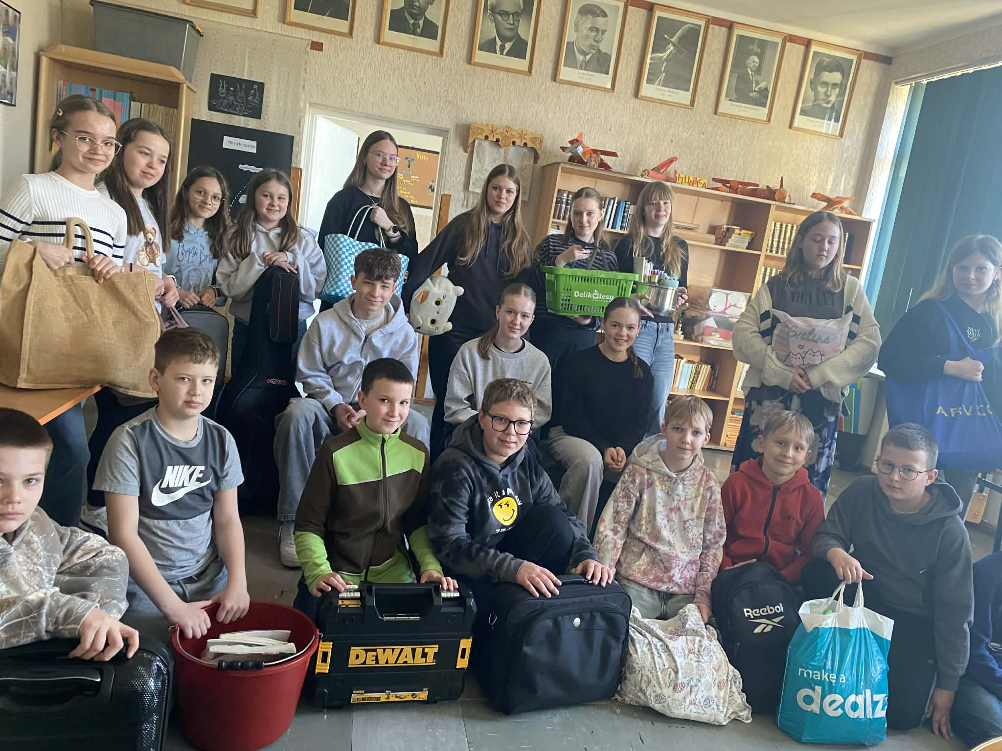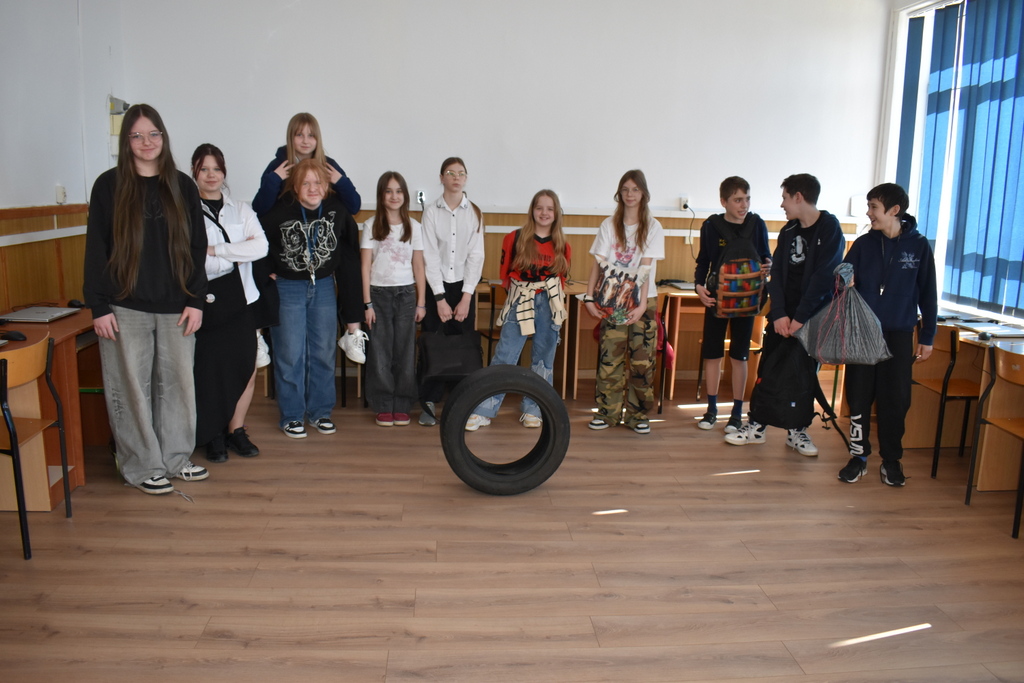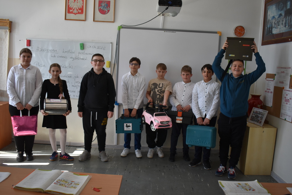 Tego dnia uczniowie naszej szkoły przyszli na lekcje bez plecaków – książki i zeszyty przynieśli w najbardziej nieoczekiwanych „opakowaniach”. Można było zobaczyć opony, skrzynki na śmieci i narzędzia, suszarki na ubrania, wiadra, taczki budowlane, poduszki oraz torby na zakupy.