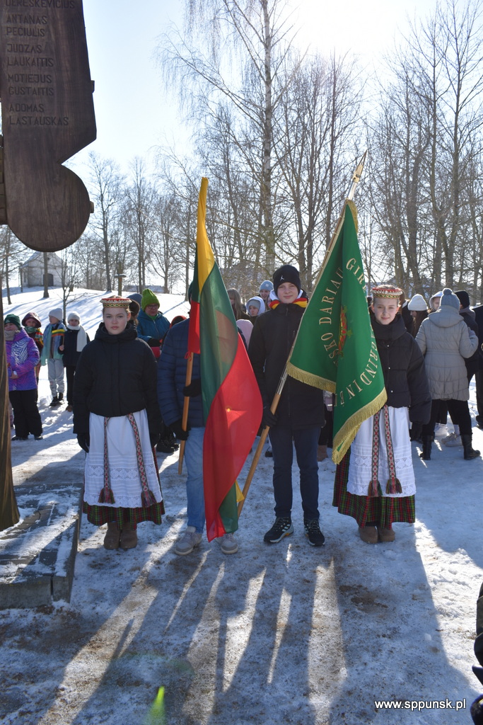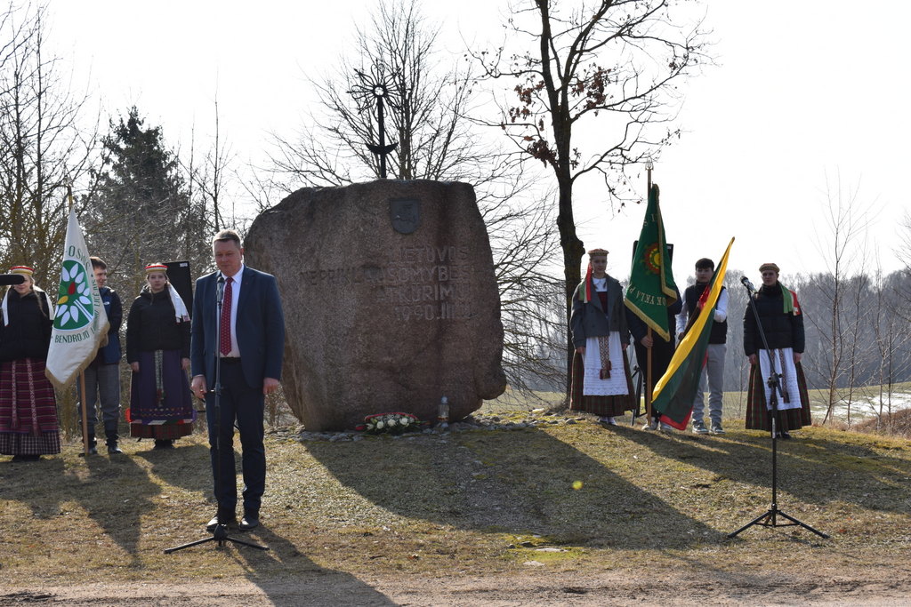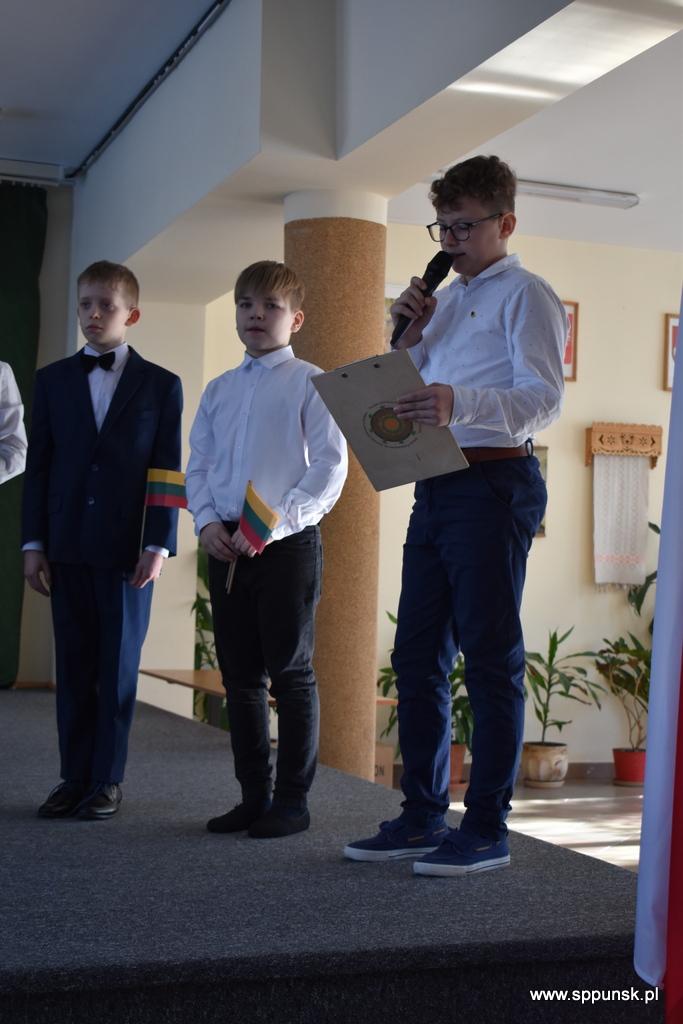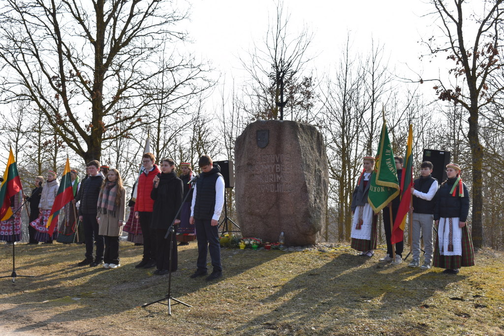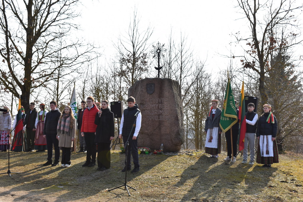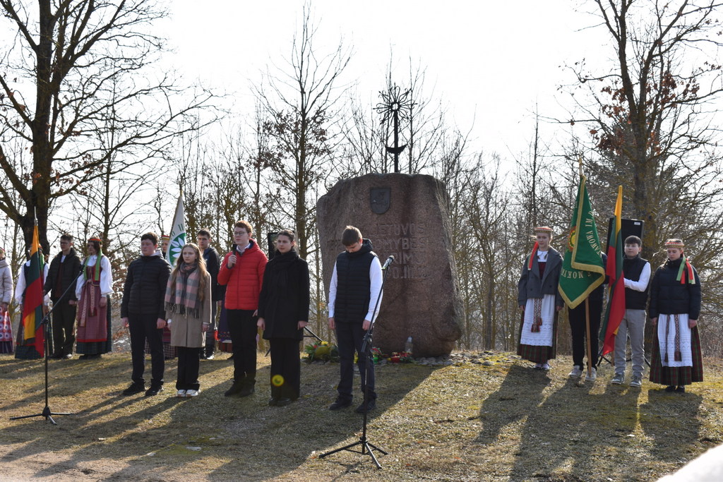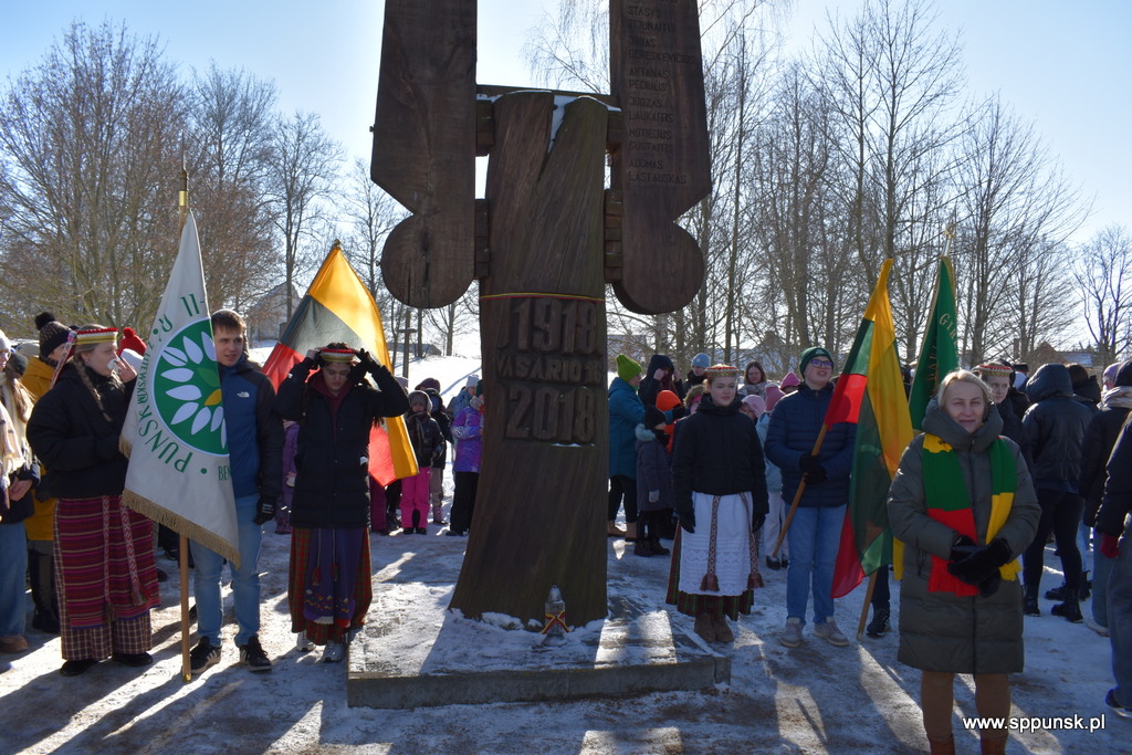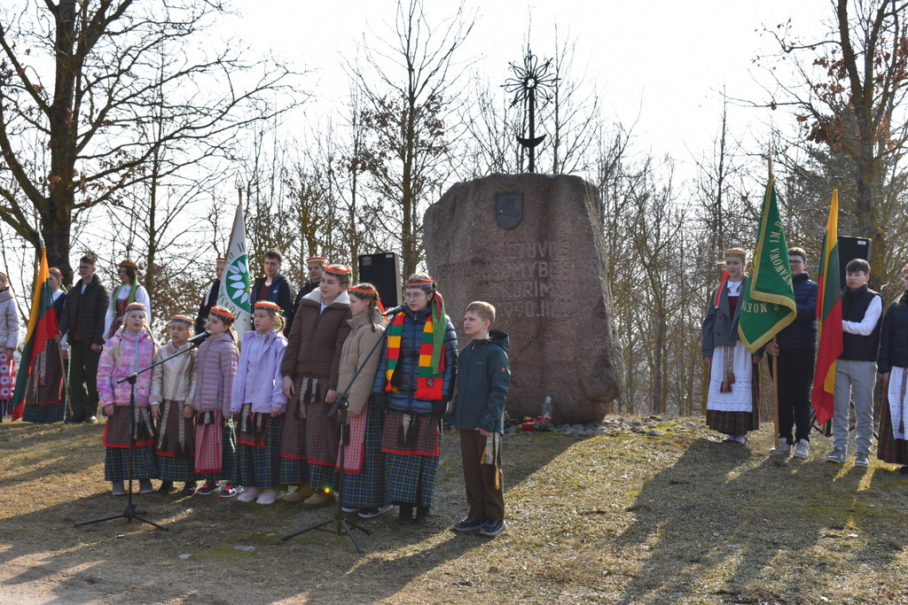 Uroczysty apel rozpoczął się od odśpiewania hymnu Litwy. Następnie uczniowie przypomnieli drogę Litwy do niepodległości. Usłyszeliśmy piękne piosenki i wiersze o miłości ojczyzny. Siódmoklasiści wyrazili również swoje myśli na temat współczesnej wolności. Podkreślili, że wolność zaczyna się od nas samych – szacunku do języka, historii, kultury i wzajemnego szanowania siebie i jest żywa, dopóki o nią dbamy.
