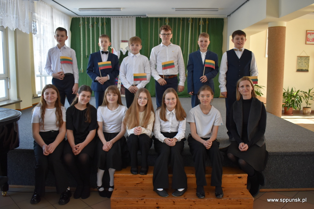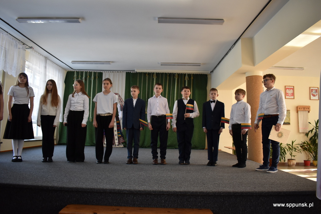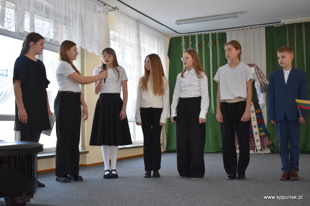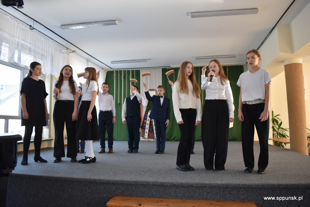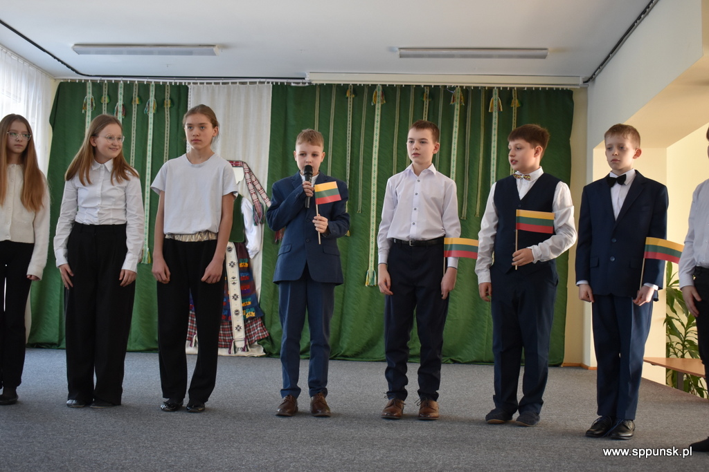 W naszej szkole dzisiaj obchodziliśmy Dzień Odrodzenia Państwa Litewskiego. To jedno z najważniejszych państwowych świąt na Litwie. 16 lutego 1918 roku dwudziestu sygnatariuszy podpisało i wydało akt ogłaszający niepodległość państwa. Powołana przez niemieckie władze okupacyjne Rada Krajowa Litwy (Taryba) na czele z Jonasem Basanavičiusem ogłosiła powstanie demokratycznej Republiki Litewskiej. Podczas drugiej lekcji najmłodsi uczniowie kl. I-III swoimi piosenkami, wierszykami i tańcem upamiętnili to święto. Podczas czwartej lekcji kl. IV-VIII święto rozpoczęły odśpiewaniem hymnu Litwy. Krótki program artystyczny przygotowali uczniowie kl. Vb. Nie zabrakło pięknych piosenek, wierszy i krótkiego konkursu wiedzy o Litwie. O godzinie 12.00 jak co roku wszyscy odśpiewali hymn przy Dzwonie Niepodległości.