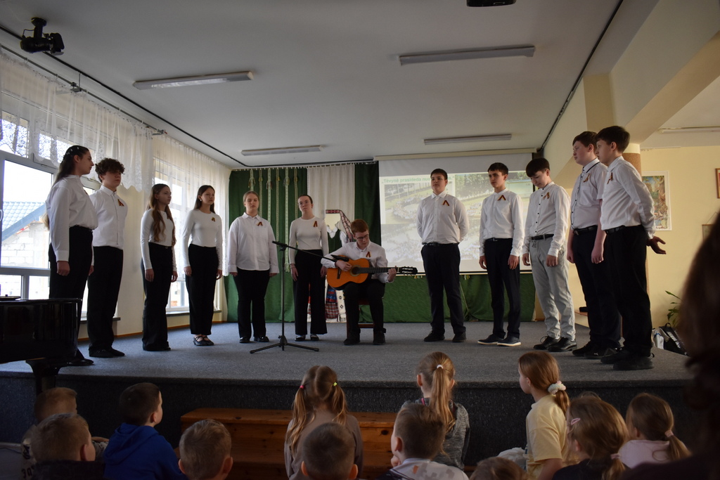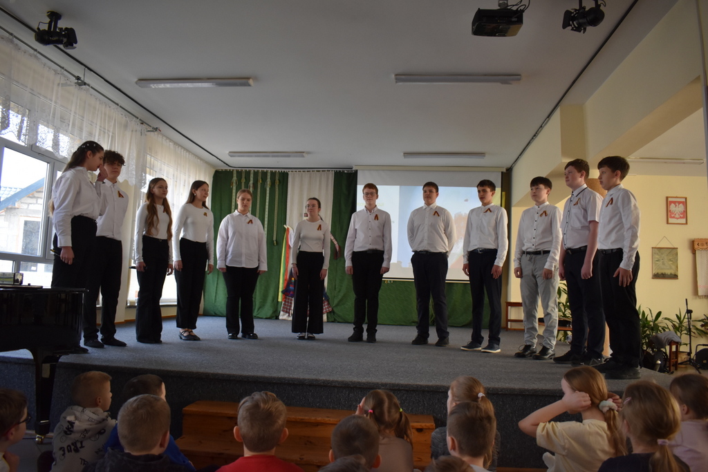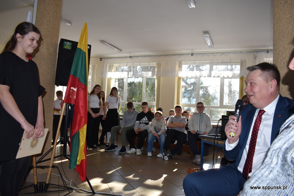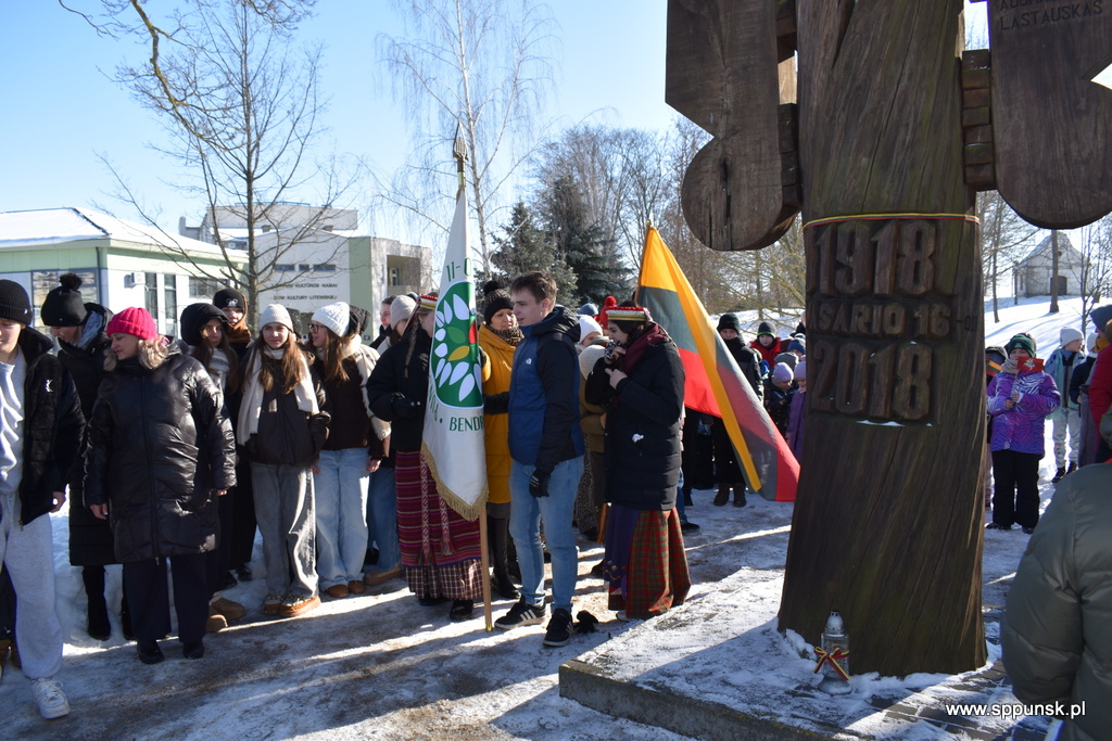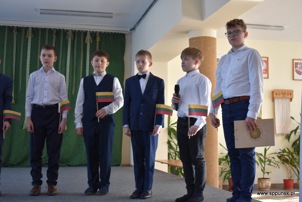W naszej szkole dzisiaj obchodziliśmy Dzień Odrodzenia Państwa Litewskiego. To jedno z najważniejszych państwowych świąt na Litwie. 16 lutego 1918 roku dwudziestu sygnatariuszy podpisało i wydało akt ogłaszający niepodległość państwa. Powołana przez niemieckie władze okupacyjne Rada Krajowa Litwy (Taryba) na czele z Jonasem Basanavičiusem ogłosiła powstanie demokratycznej Republiki Litewskiej. Podczas drugiej lekcji najmłodsi uczniowie kl. I-III swoimi piosenkami, wierszykami i tańcem upamiętnili to święto. Podczas czwartej lekcji kl. IV-VIII święto rozpoczęły odśpiewaniem hymnu Litwy. Krótki program artystyczny przygotowali uczniowie kl. Vb. Nie zabrakło pięknych piosenek, wierszy i krótkiego konkursu wiedzy o Litwie. O godzinie 12.00 jak co roku wszyscy odśpiewali hymn przy Dzwonie Niepodległości.