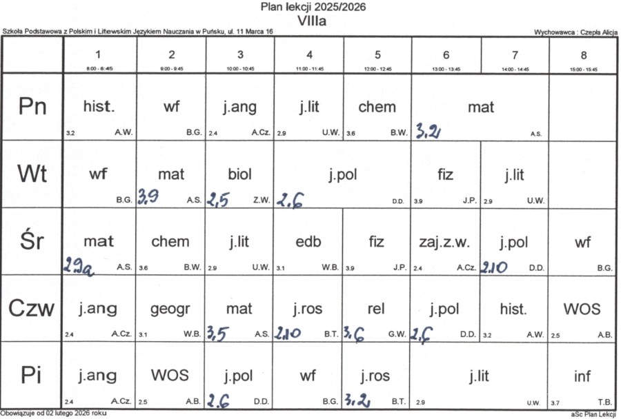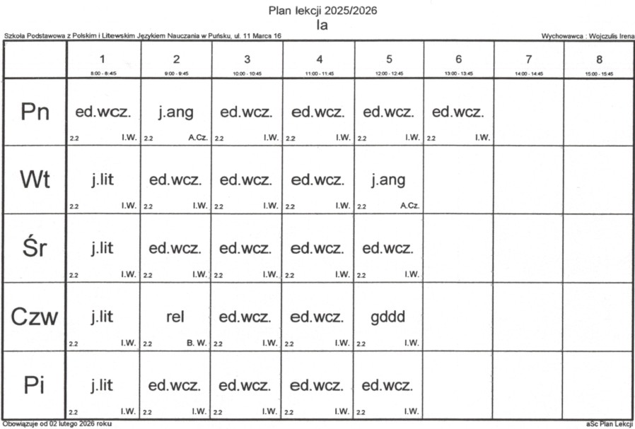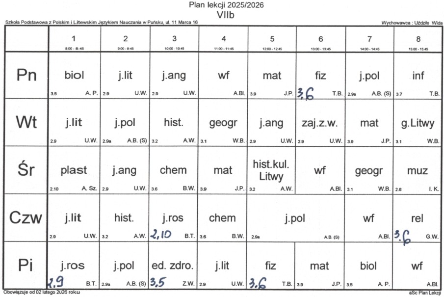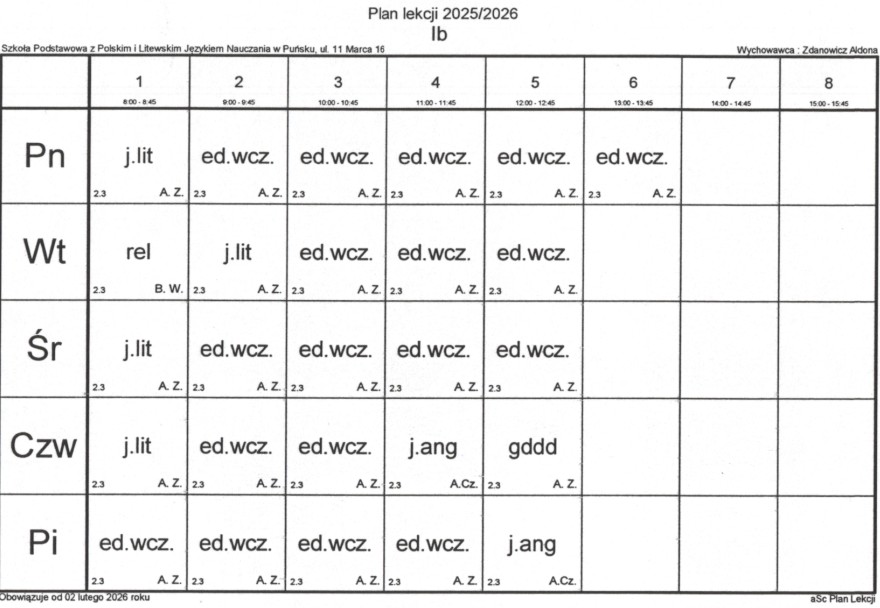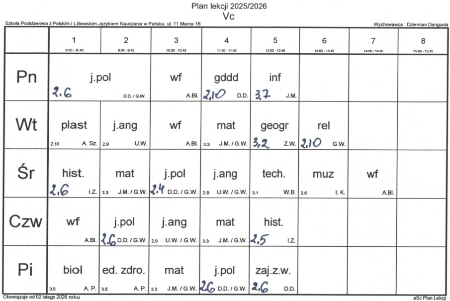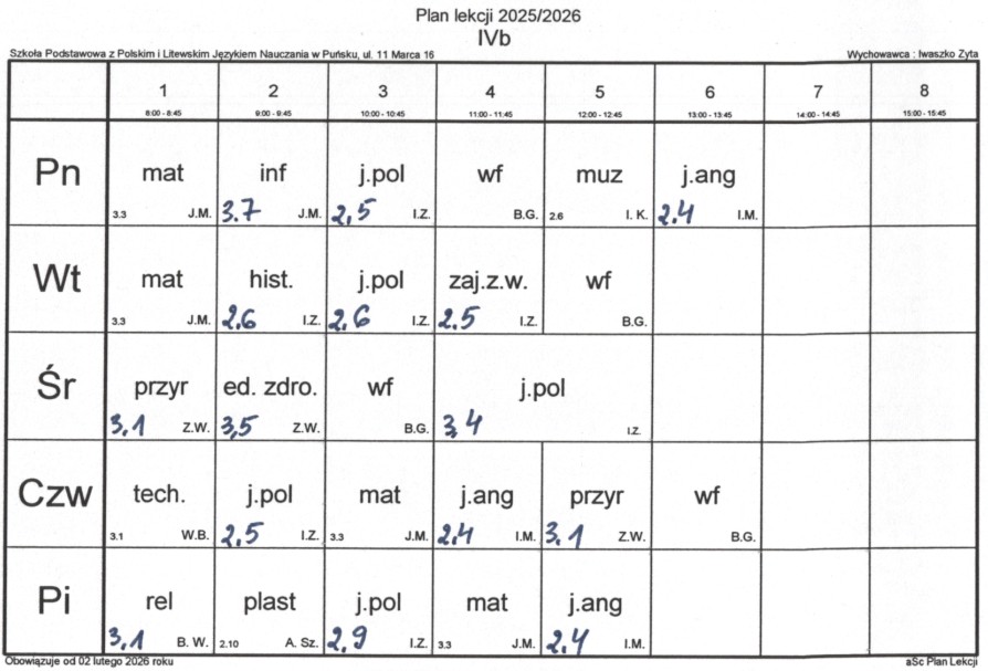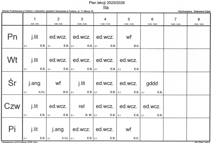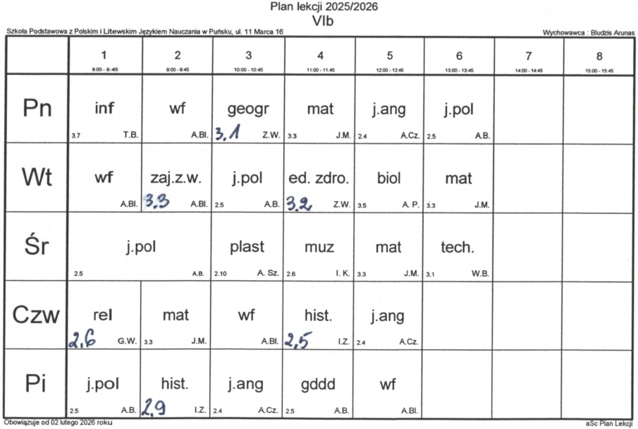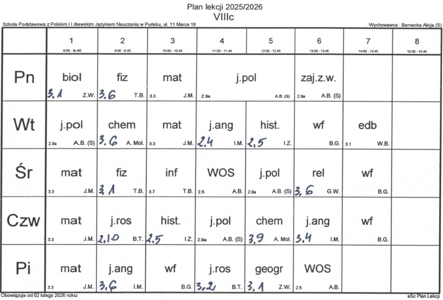że w dniach 2–3 lutego 2026 r., z powodu trudnych warunków atmosferycznych, transport szkolny nie będzie kursował. Szkoła będzie funkcjonować w normalnym trybie, a lekcje odbędą się zgodnie z planem. Uczniowie, którzy nie przyjdą na lekcje, będą usprawiedliwieni.