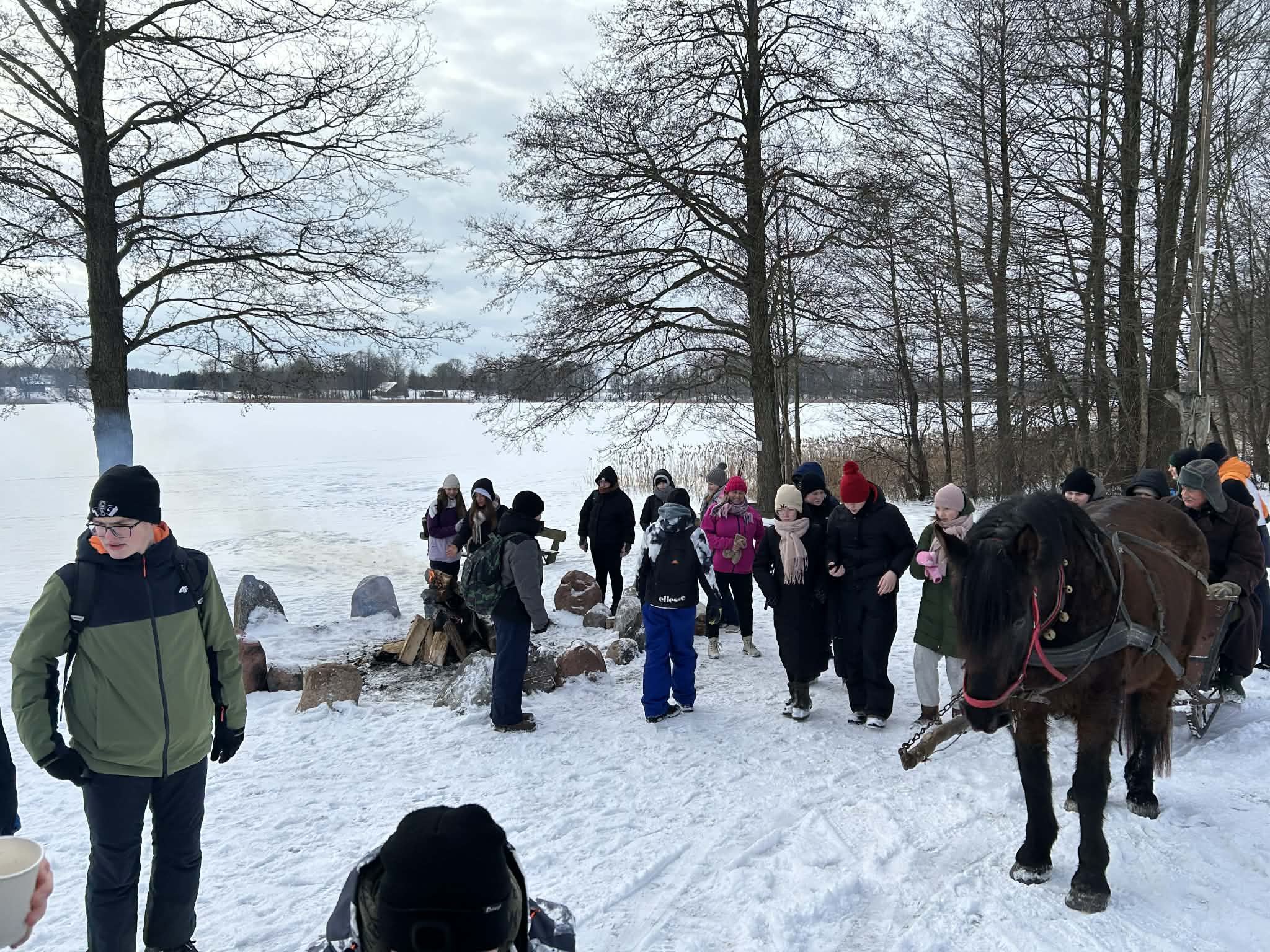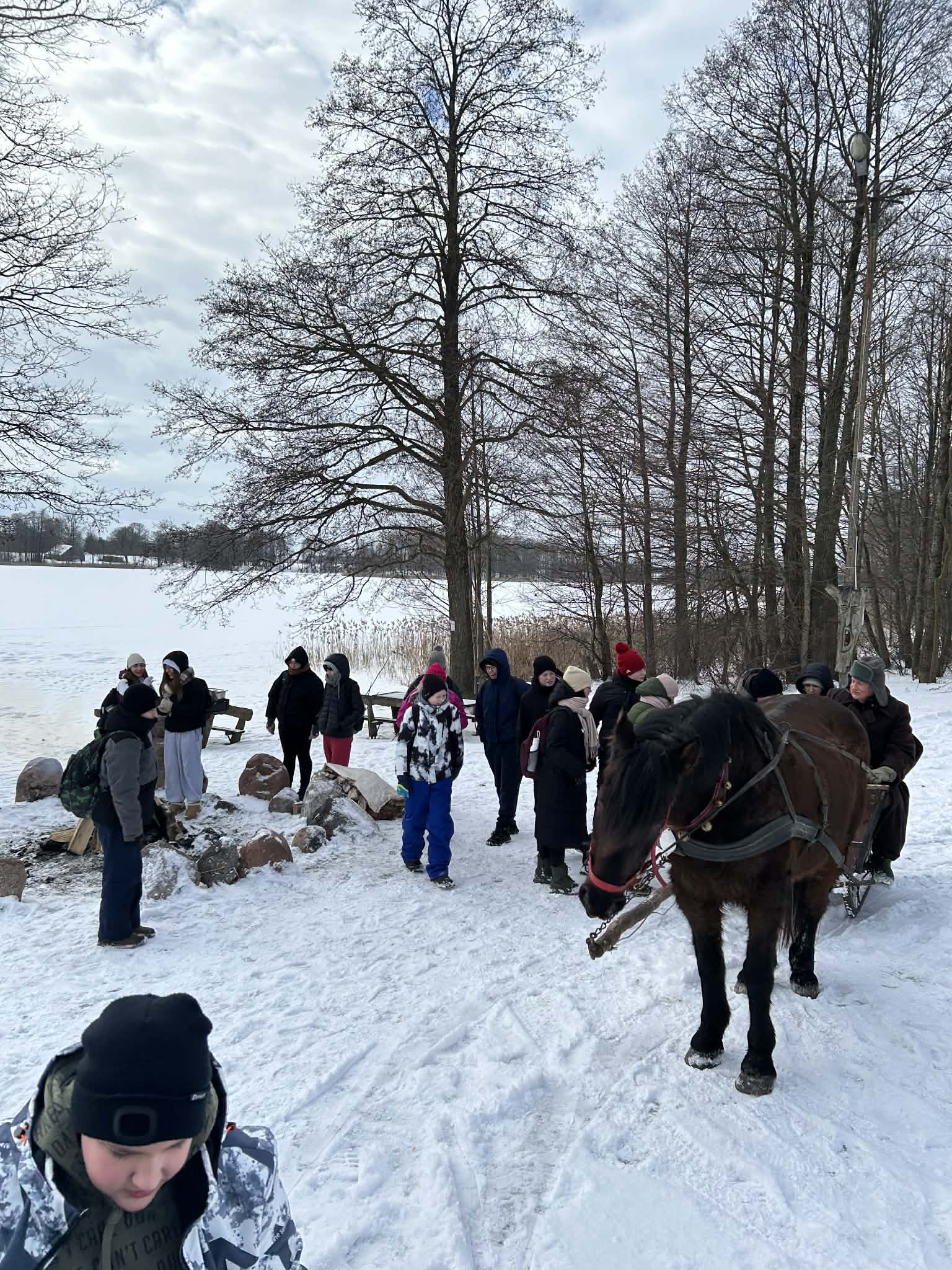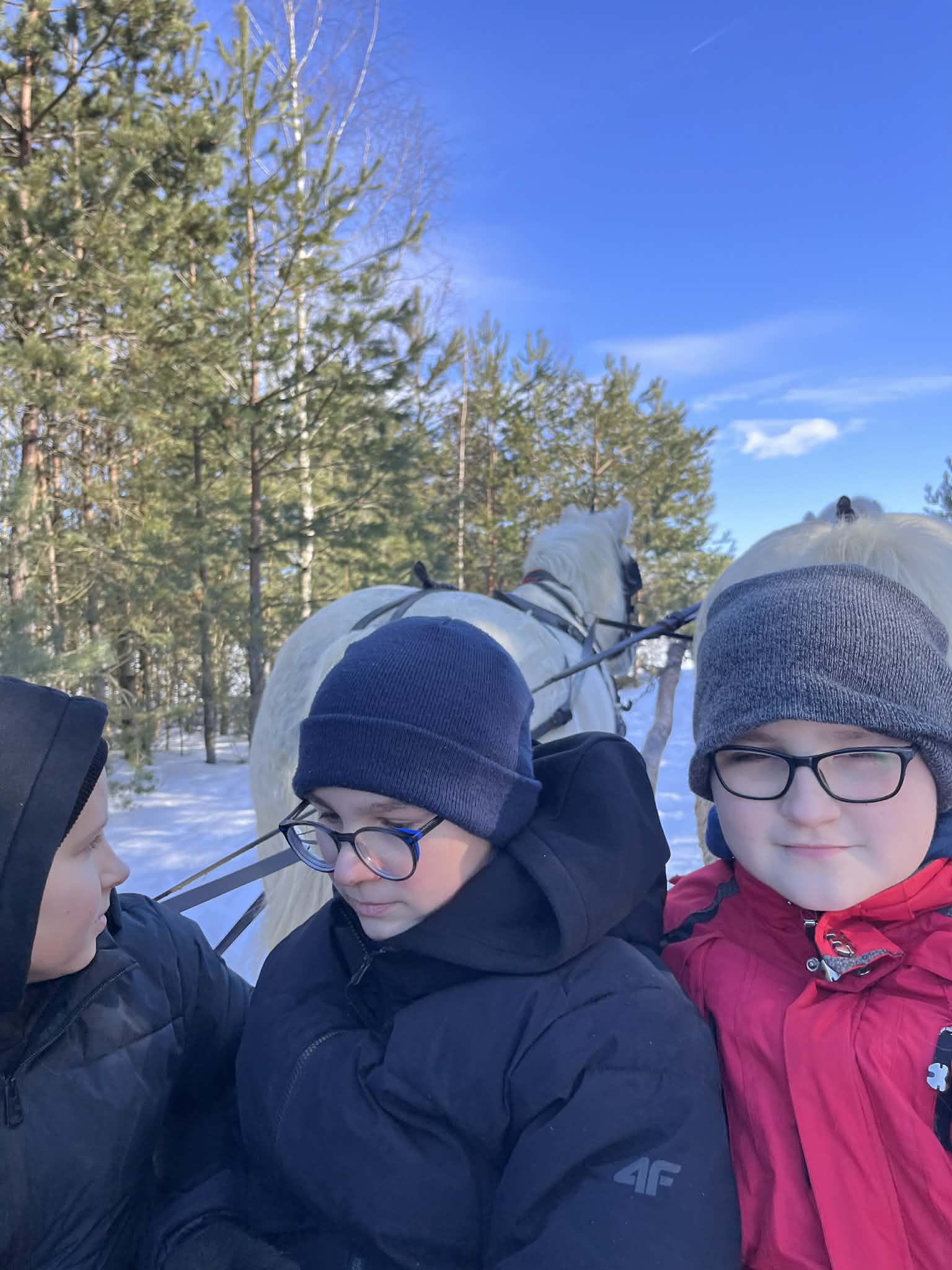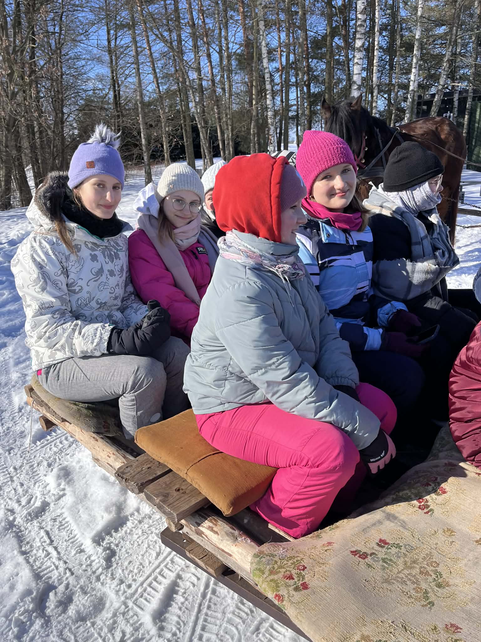 Dokładnie tak było, jak w piosence Skaldów, ponieważ w piątek 20 lutego 2026 roku przy pięknej, słonecznej pogodzie uczniowie klas VIa i VIb wraz z opiekunami wybrali się na zimowy przejazd saniami zaprzężonymi w konie do Šilainė Recreation & Leisure. Wrażenia były niesamowite, gdyż większa część uczniów pierwszy raz w życiu miała okazję korzystać z takich atrakcji. Większe sanie ciągnęły dwa siwe konie, mniejsze – jeden gniady, a śmiechu i radości było co niemiara.