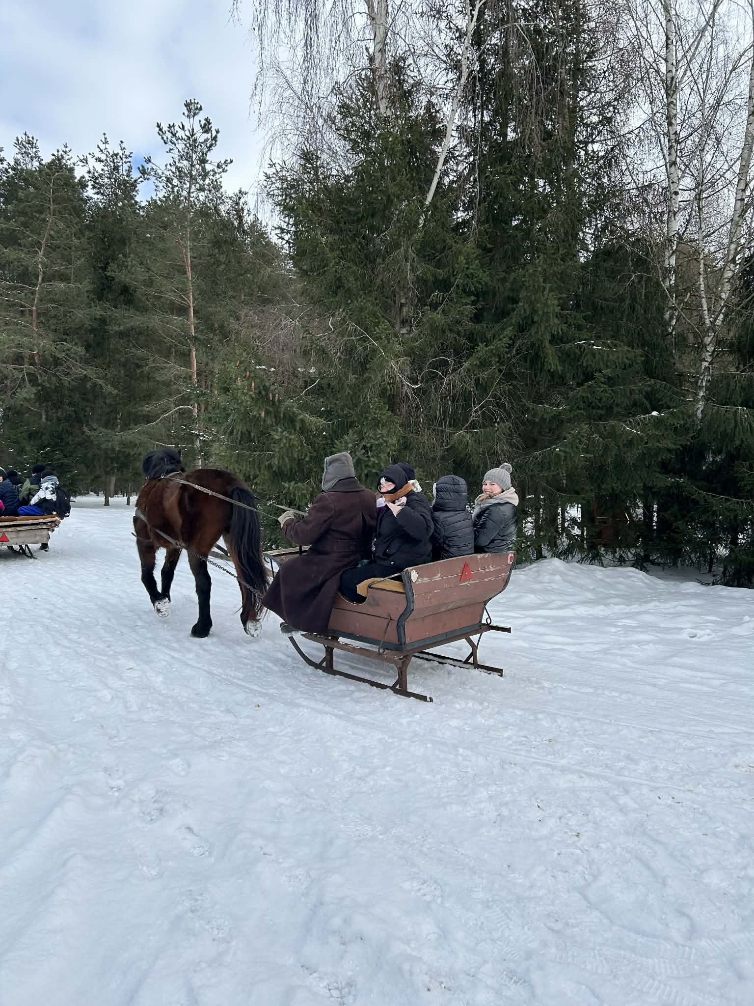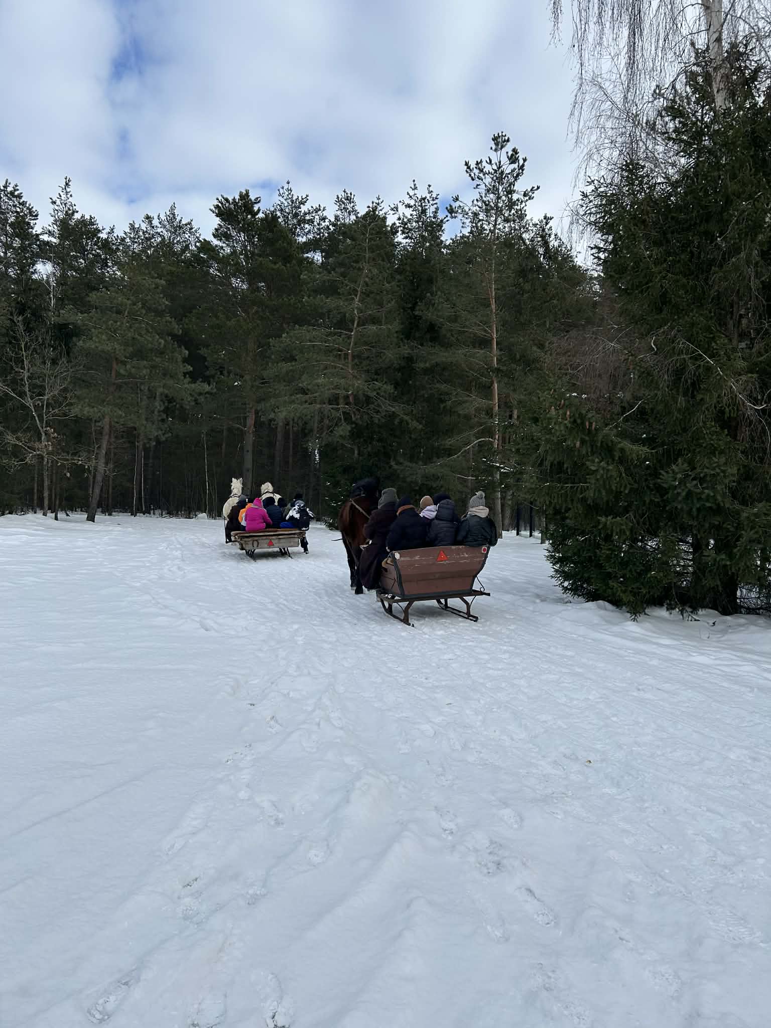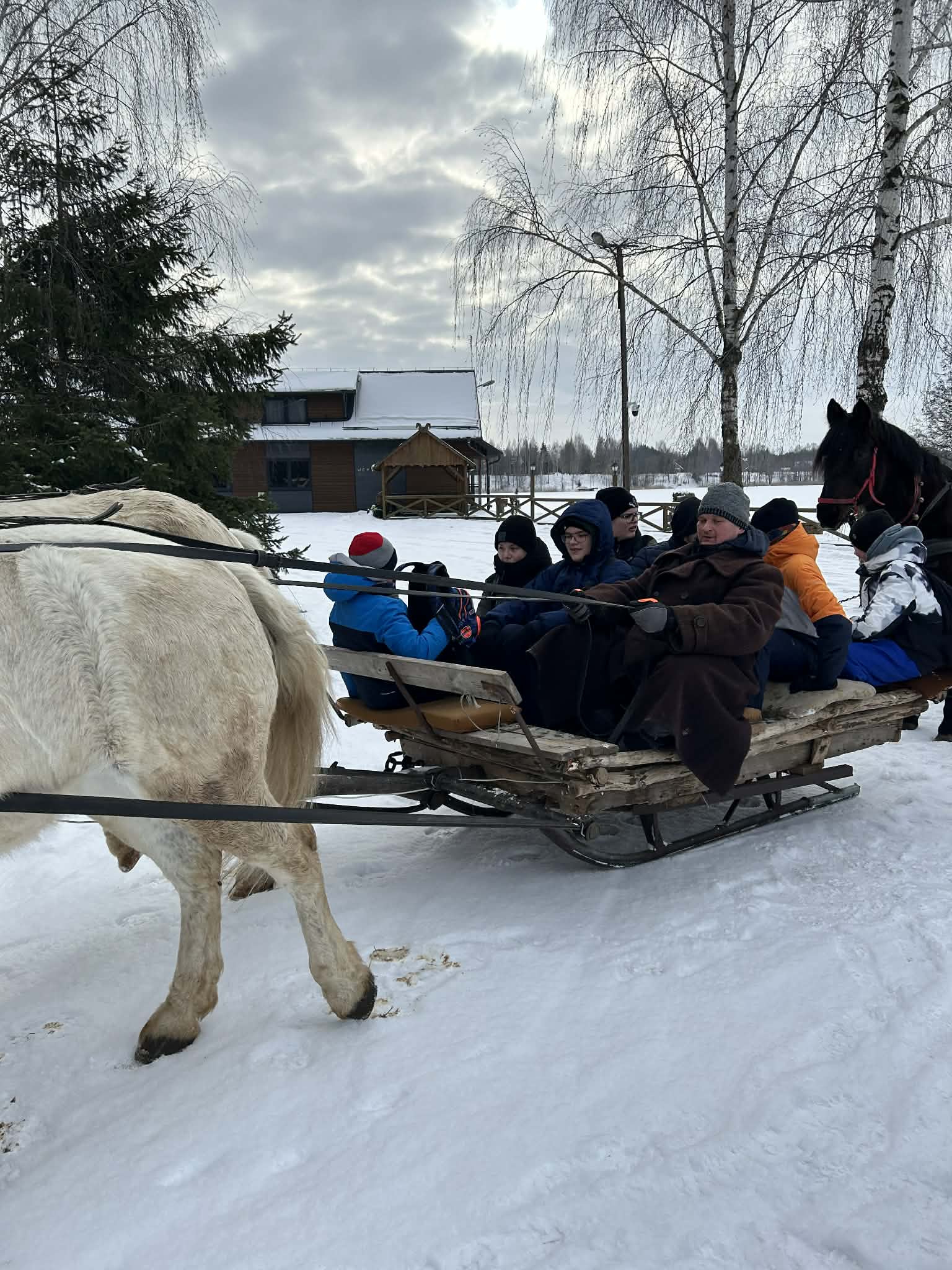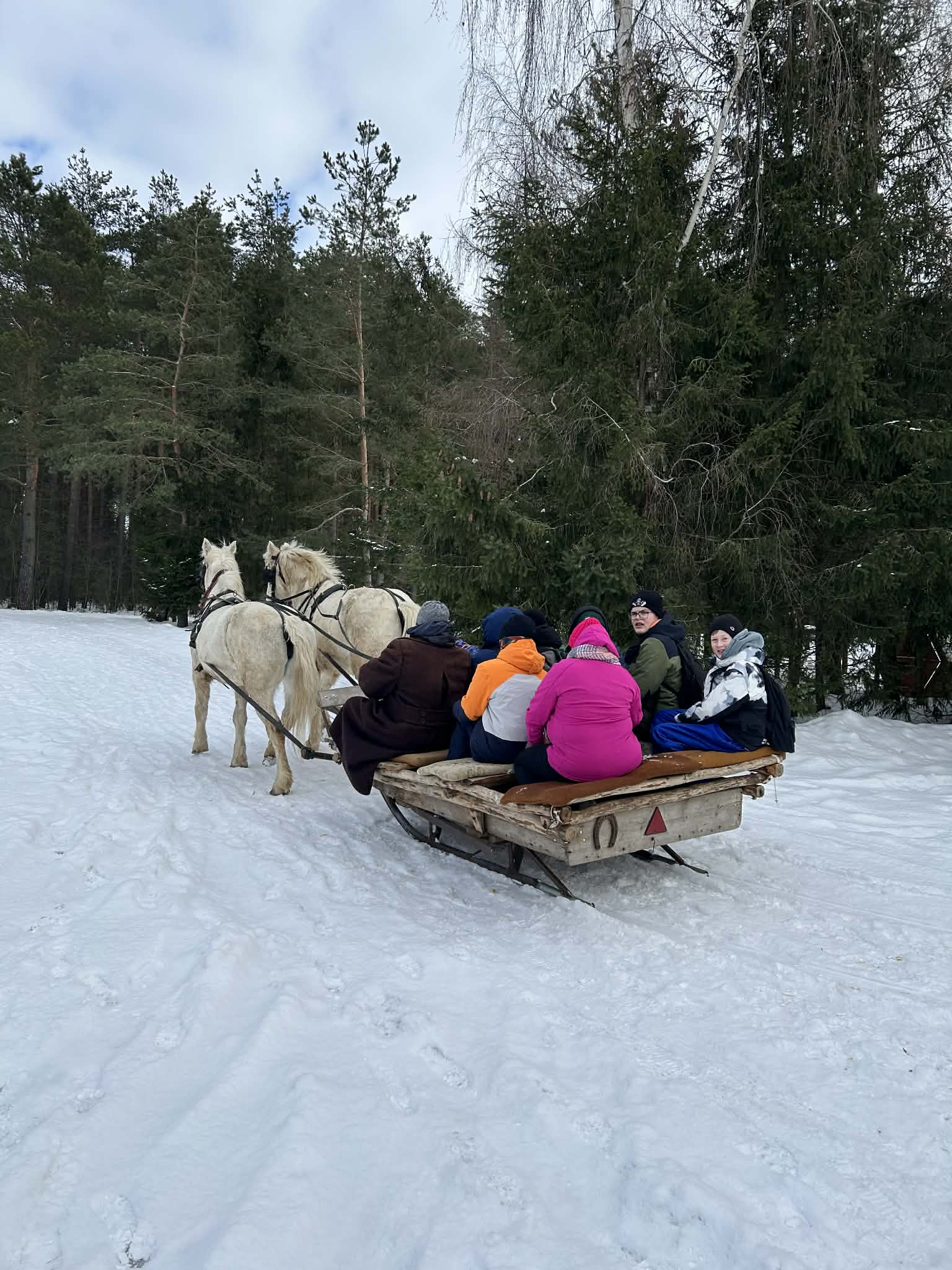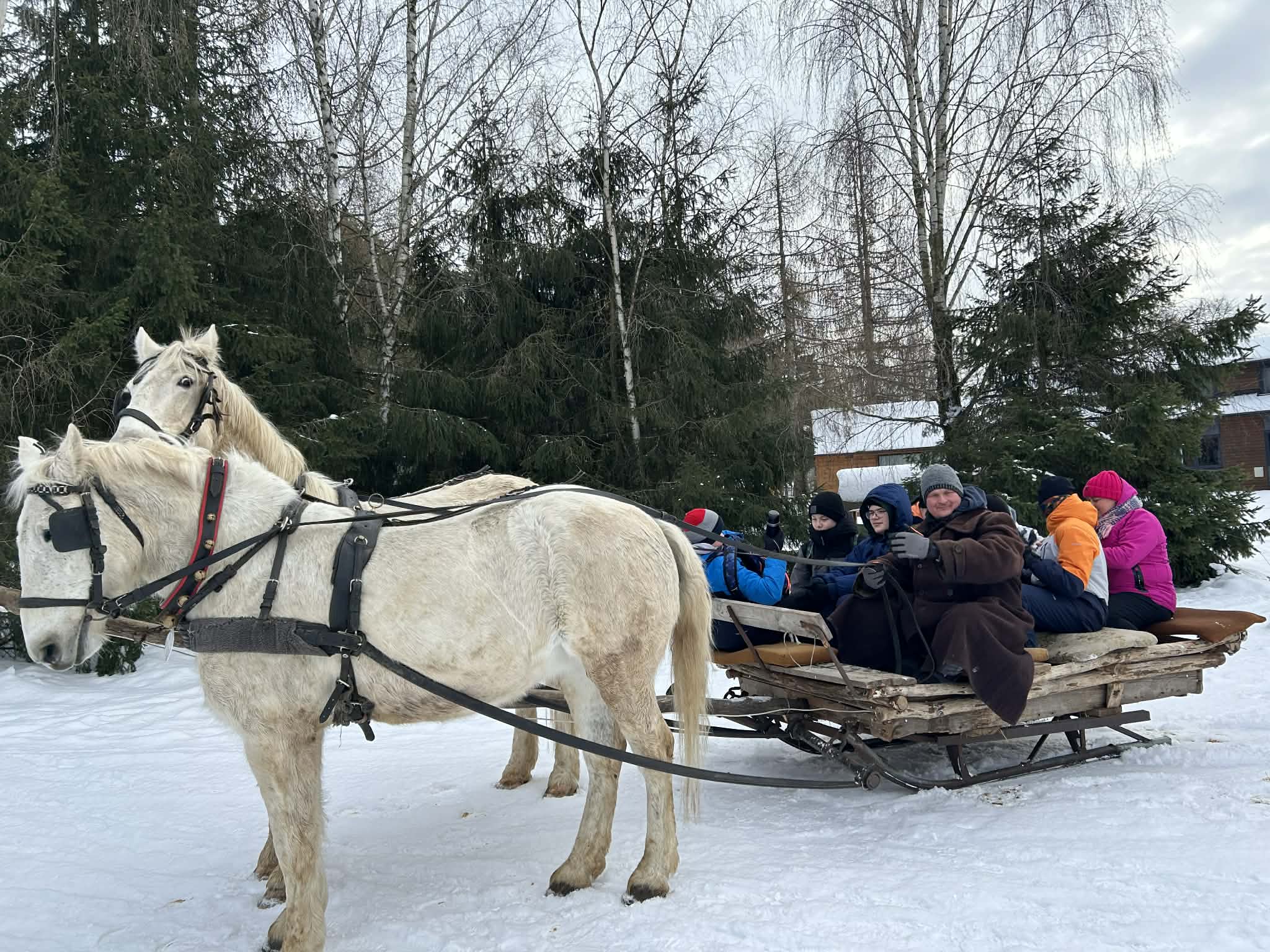 Dokładnie tak było, jak w piosence Skaldów, ponieważ w piątek 20 lutego 2026 roku przy pięknej, słonecznej pogodzie uczniowie klas VIa i VIb wraz z opiekunami wybrali się na zimowy przejazd saniami zaprzężonymi w konie do Šilainė Recreation & Leisure. Wrażenia były niesamowite, gdyż większa część uczniów pierwszy raz w życiu miała okazję korzystać z takich atrakcji. Większe sanie ciągnęły dwa siwe konie, mniejsze – jeden gniady, a śmiechu i radości było co niemiara.