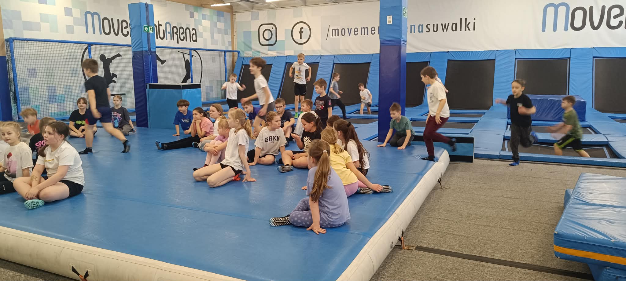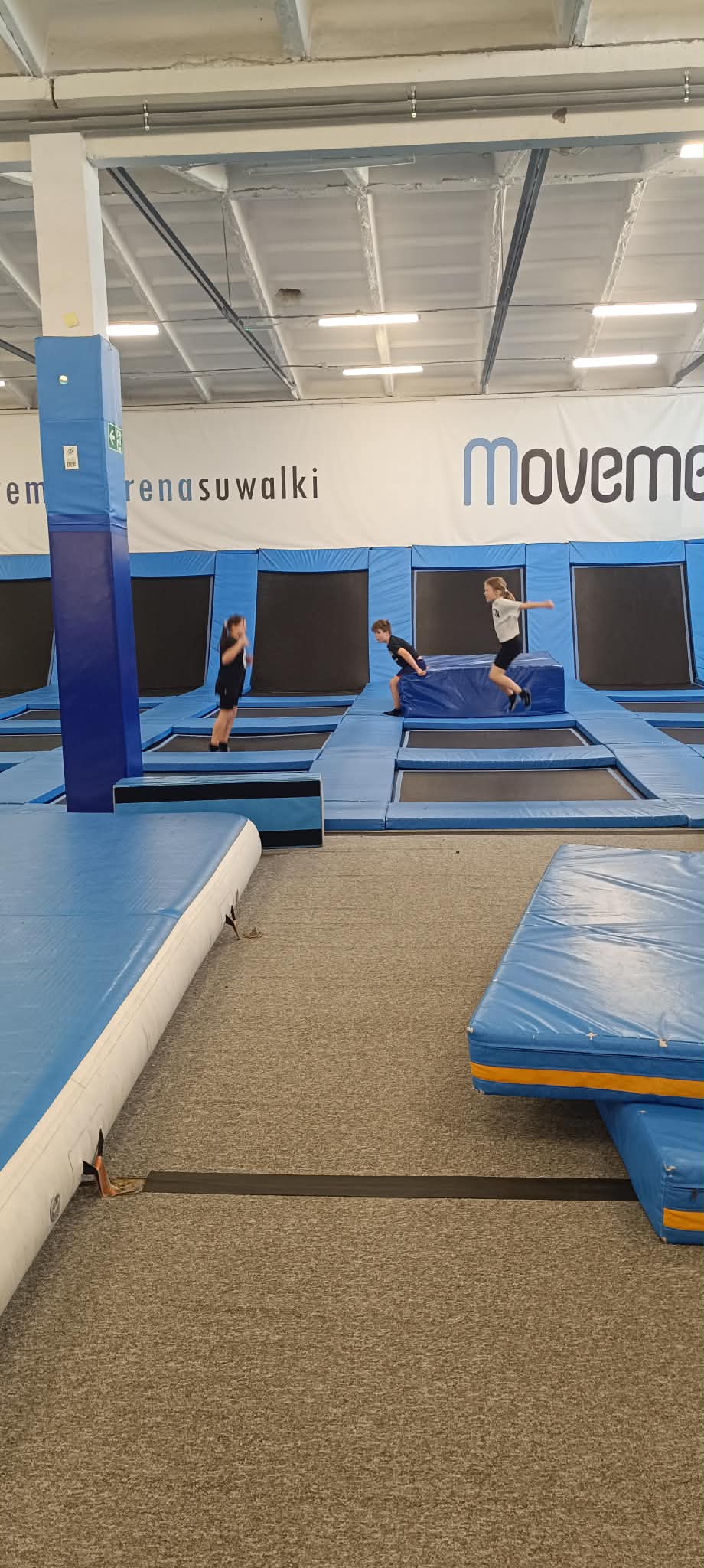 Po seansie filmowym pojechali do Parku Trampolin. Tam mogli skakać na trampolinach, pokonywać różne przeszkody, bawić się i aktywnie spędzać czas. Było dużo radości i śmiechu.