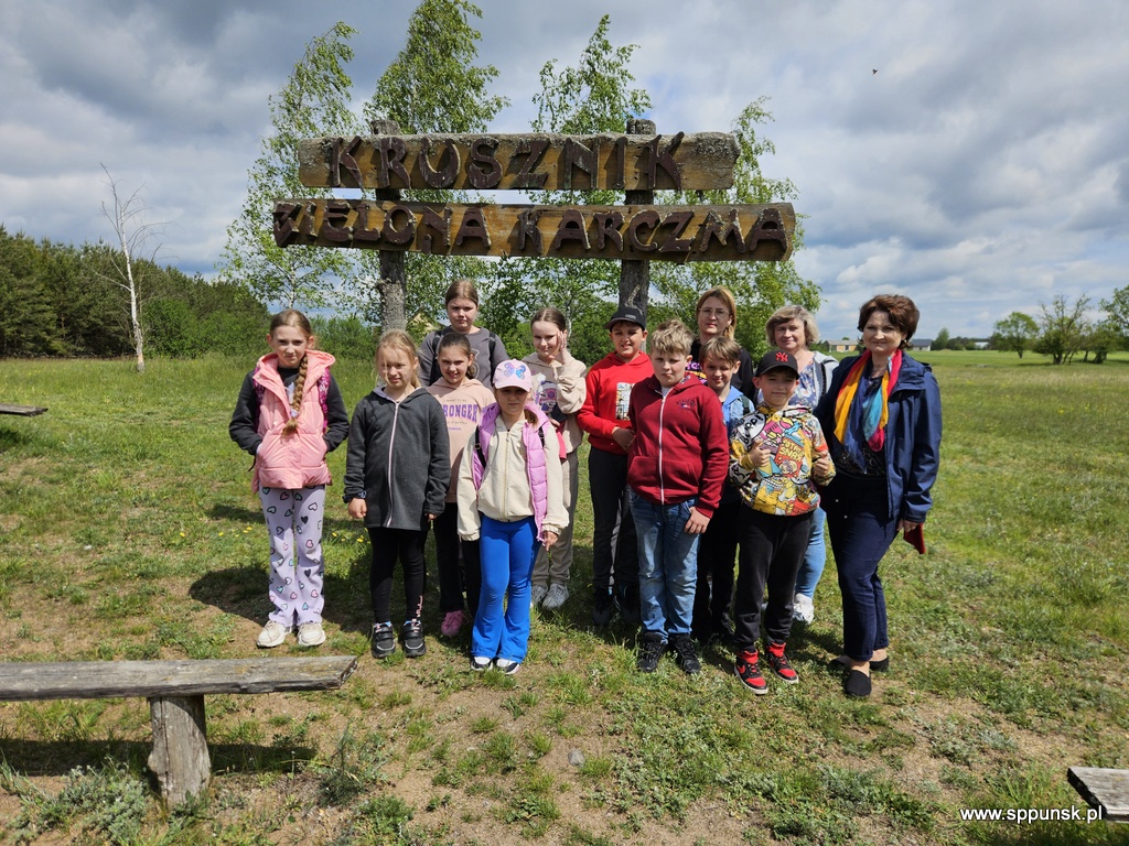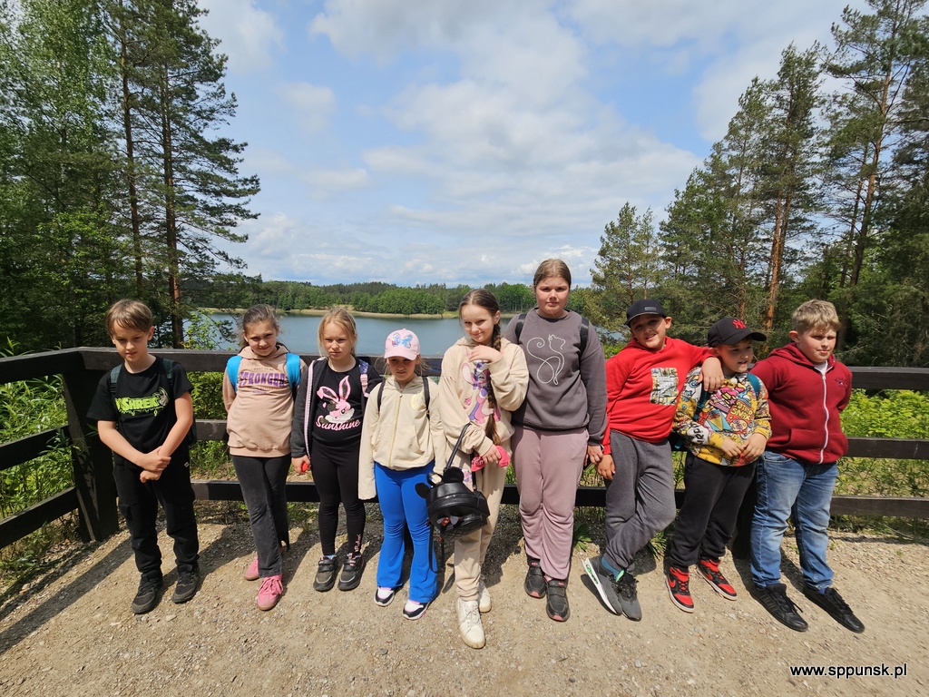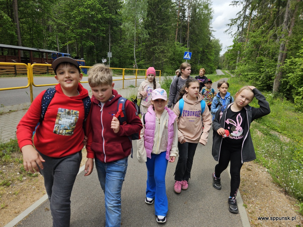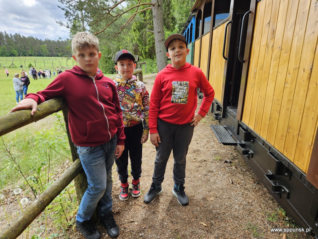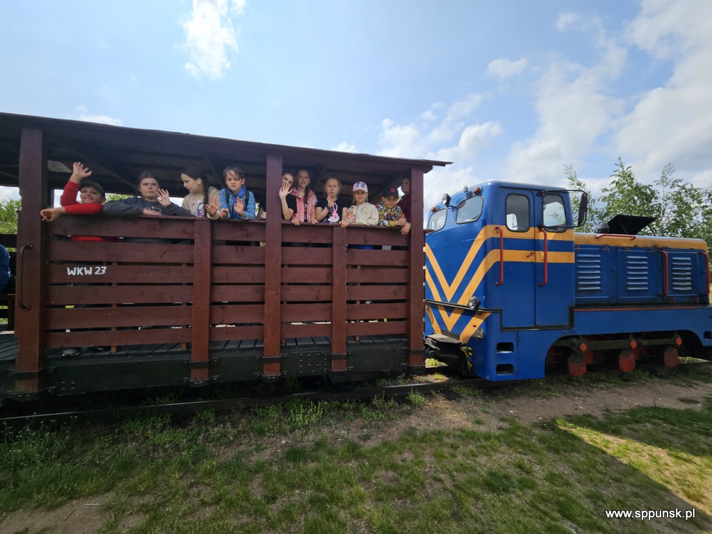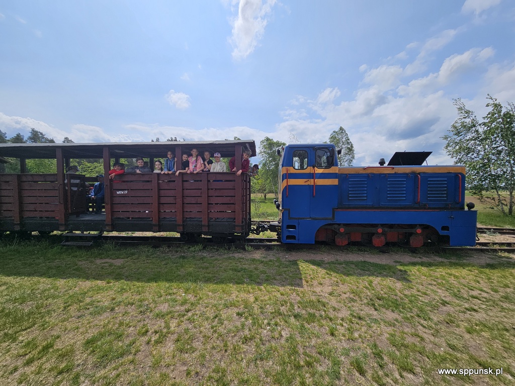 Dnia 2 czerwca 2025 r. uczniowie klas Ib, IIc i IIIb wraz z opiekunami udali się na wycieczkę do Płociczna – malowniczej miejscowości położonej na skraju Wigierskiego Parku Narodowego. Podczas pobytu w tym pięknym miejscu uczestnicy wyjazdu mieli okazję przejechać się słynną kolejką wąskotorową. W czasie jazdy uczniowie podziwiali piękne widoki jezior, lasów i torfowisk. Dzieci poznały ciekawostki o urokliwej przyrodzie oraz poszerzyły wiedzę na temat historii tego regionu. Nie zabrakło również czasu na zabawy na świeżym powietrzu. Wycieczka była nie tylko atrakcyjna i relaksująca, ale również bardzo pouczająca. Z pewnością na długo pozostanie w ich pamięci.