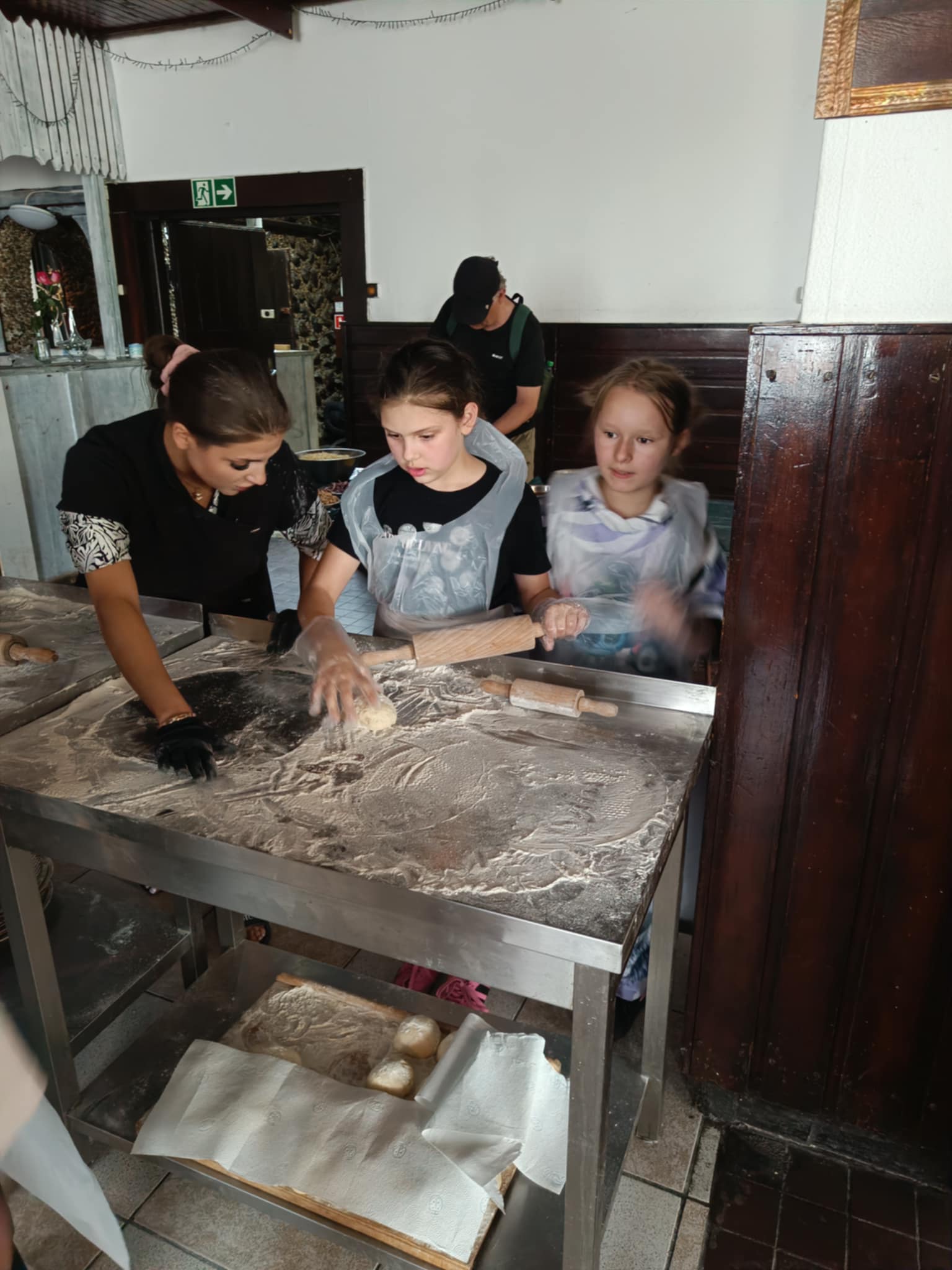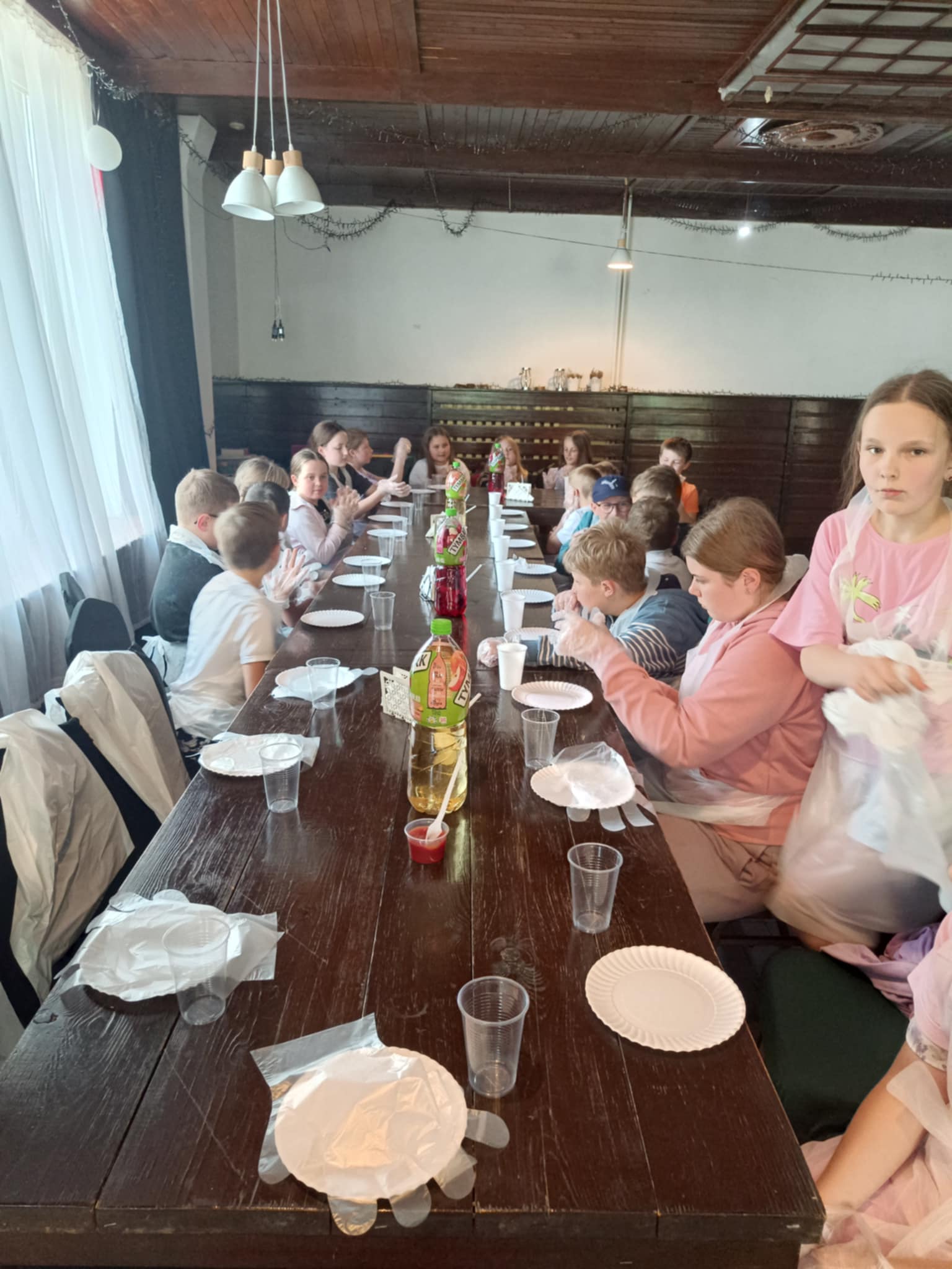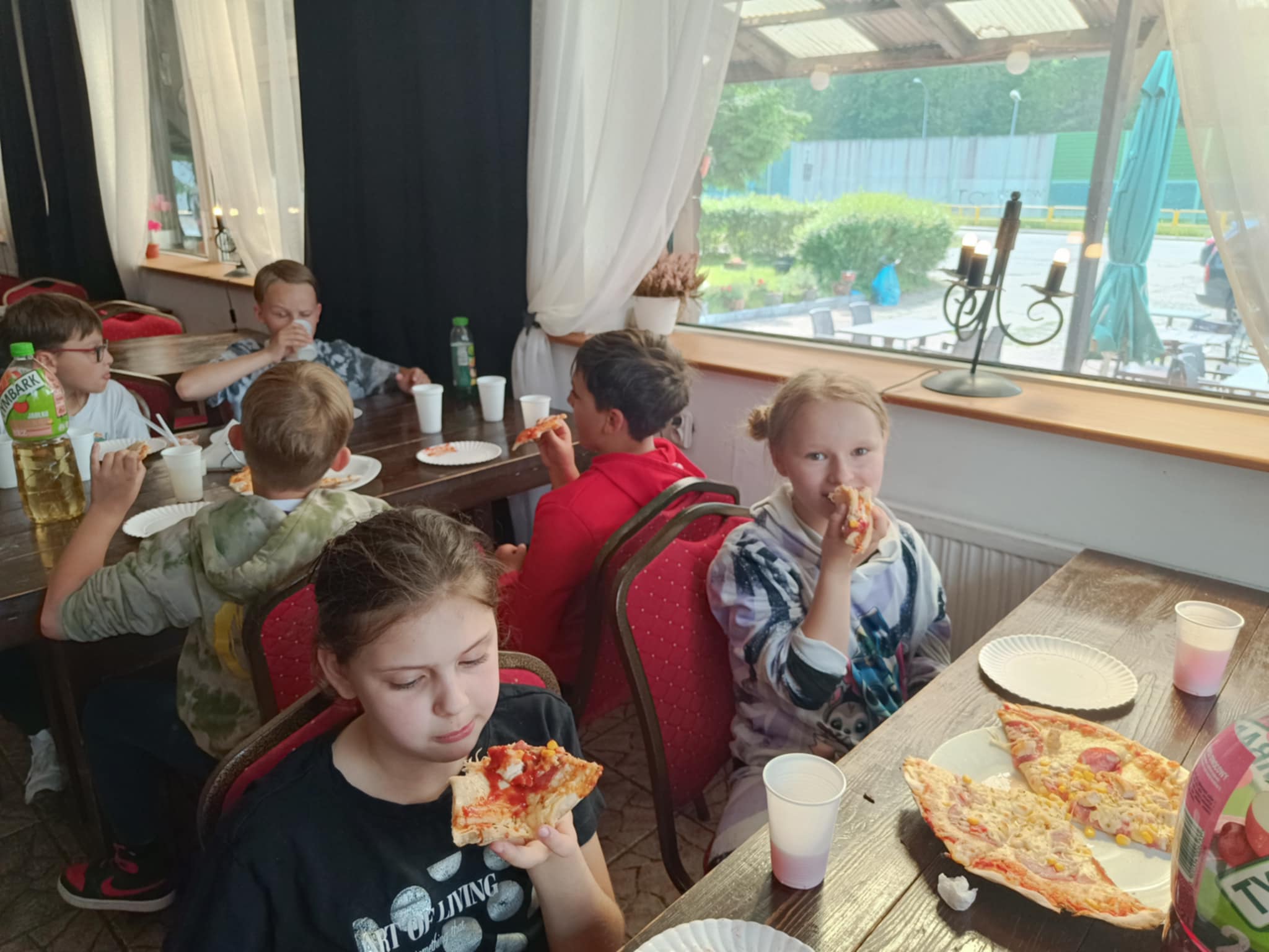 Na zakończenie dnia uczniowie udali się do restauracji Wiking, gdzie wzięli udział w warsztatach kulinarnych z przygotowywania pizzy. Każde dziecko mogło samodzielnie stworzyć swoją własną pizzę – od rozciągnięcia ciasta, przez dobór składników, aż po obserwację, jak wypiek trafia do pieca. Była to nie tylko świetna zabawa, ale też okazja do nauki pracy zespołowej i rozwijania zdolności manualnych. Oczywiście najprzyjemniejszym momentem była degustacja własnoręcznie wykonanych wypieków!