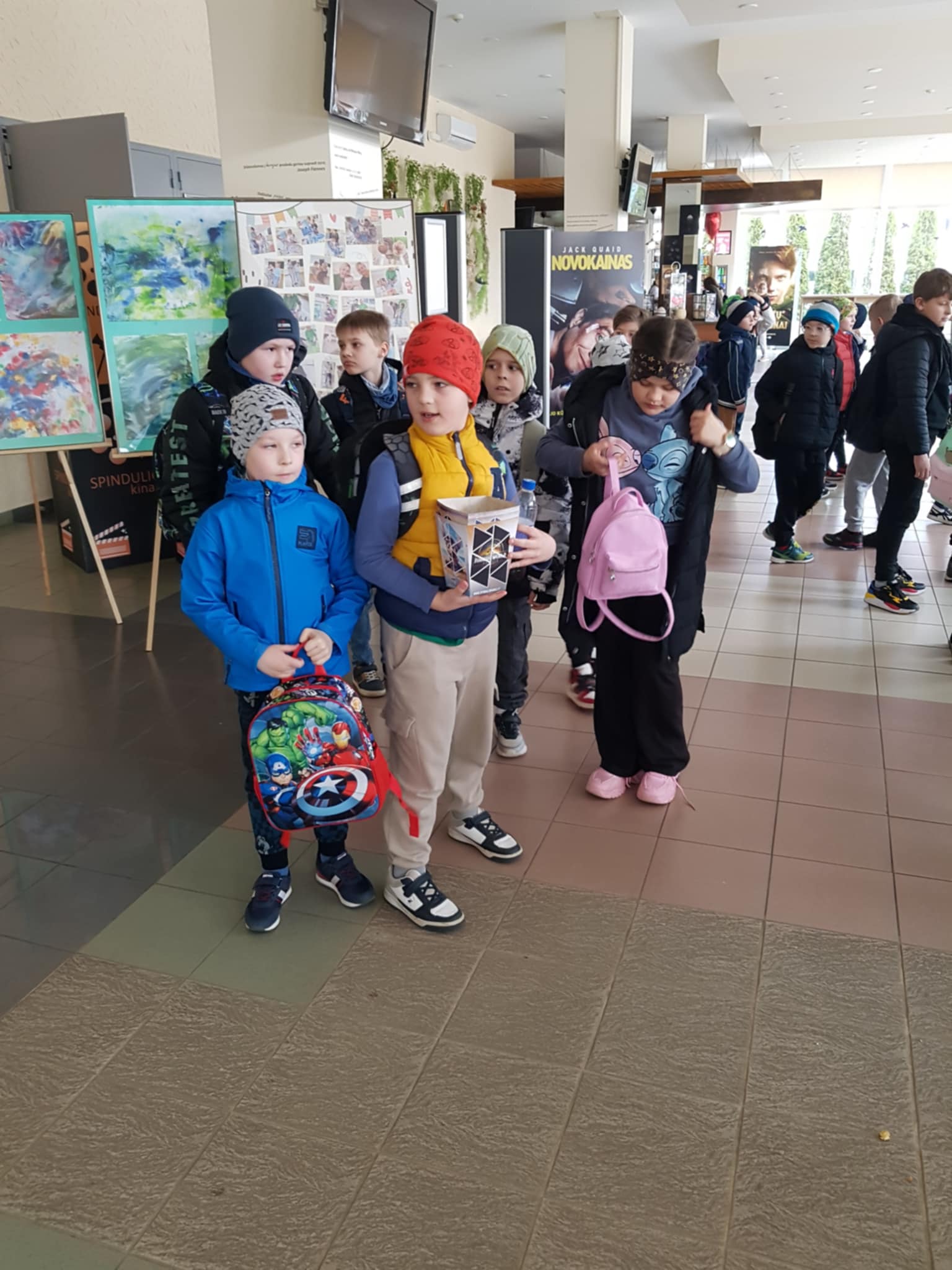 Kovo 28 dieną mūsų mokyklos Ia, IIa, IIb bei IIIa klasių mokiniai su savo auklėtojomis keliavo į Marijampolės kino teatrą „Spindulys”. Čia jie lankėsi jau nebe pirmą kartą. Džiugu, kad mokinukai vėl turėjo galimybę pasinaudoti Kultūros paso programa. Pradinukai žiūrėjo pirmuoju Baltijos šalyse „Auksiniu gaubliu“ už geriausią animaciją apdovanotą latvių režisieriaus Ginto Zilbalodžio filmą „Potvynis“. Katastrofiško potvynio nuniokotame pasaulyje vienišas katinas randa prieglobstį dreifuojančioje burinėje valtyje, kurioje jau gyvena mieguista kapibara. Jų kelionėje prie netikėtos komandos prisijungia ir kiti gyvūnai – daiktus kaupiantis lemūras bei ištikimas auksaspalvis retriveris. Ši marga kompanija privalo įveikti naujo vandens pasaulio iššūkius ir išmokti bendradarbiauti, kad išgyventų. „Potvynis“ įtraukė į nepamirštamą, nuotykių kupiną kelionę, kurioje iš naujo mokinukai galėjo atrasti draugystės prasmę. Vaikams po filmo buvo suteikta galimybė pabendrauti grupėse. Vyko edukaciniai užsiėmimai. Mūsų mokyklos jauniausieji aktyviai traukė kortas ir atsakinėjo į pateiktus klausimus. Tokiu būdu kiekvienas galėjo susimąstyti, kas yra draugystė, ko pasimokė ir kas suteikė emocijų. Mokinukams tai buvo dar viena pamoka, kur mokėsi ne tik sugalvoti bei įgyvendinti idėjas, bet ir interpretuoti svarbius gyvenimo klausimus. Ši pavasariška diena buvo kupina įspūdžių ir nekasdienių išgyvenimų.
