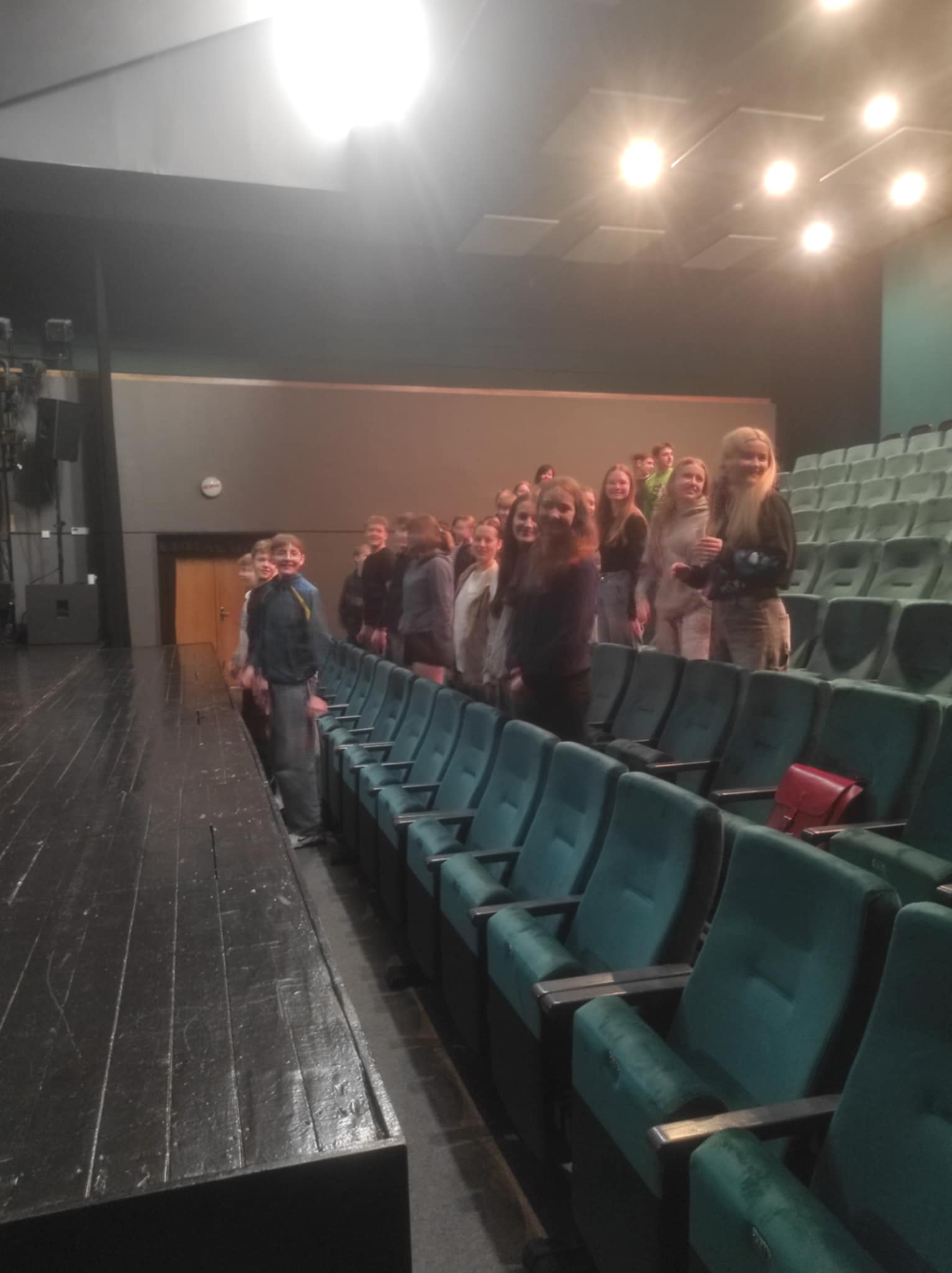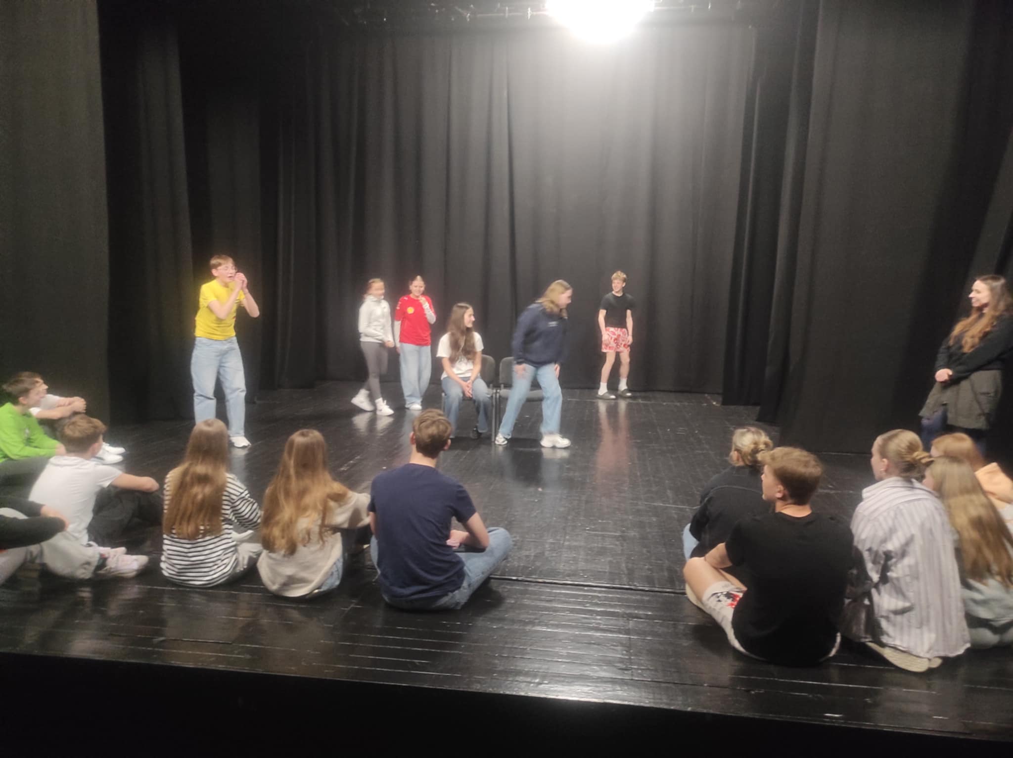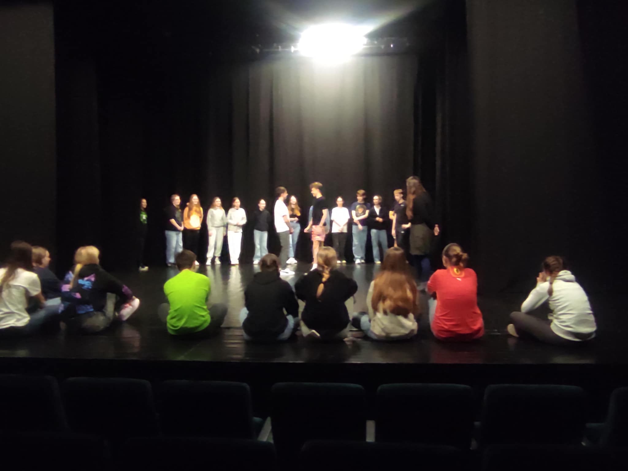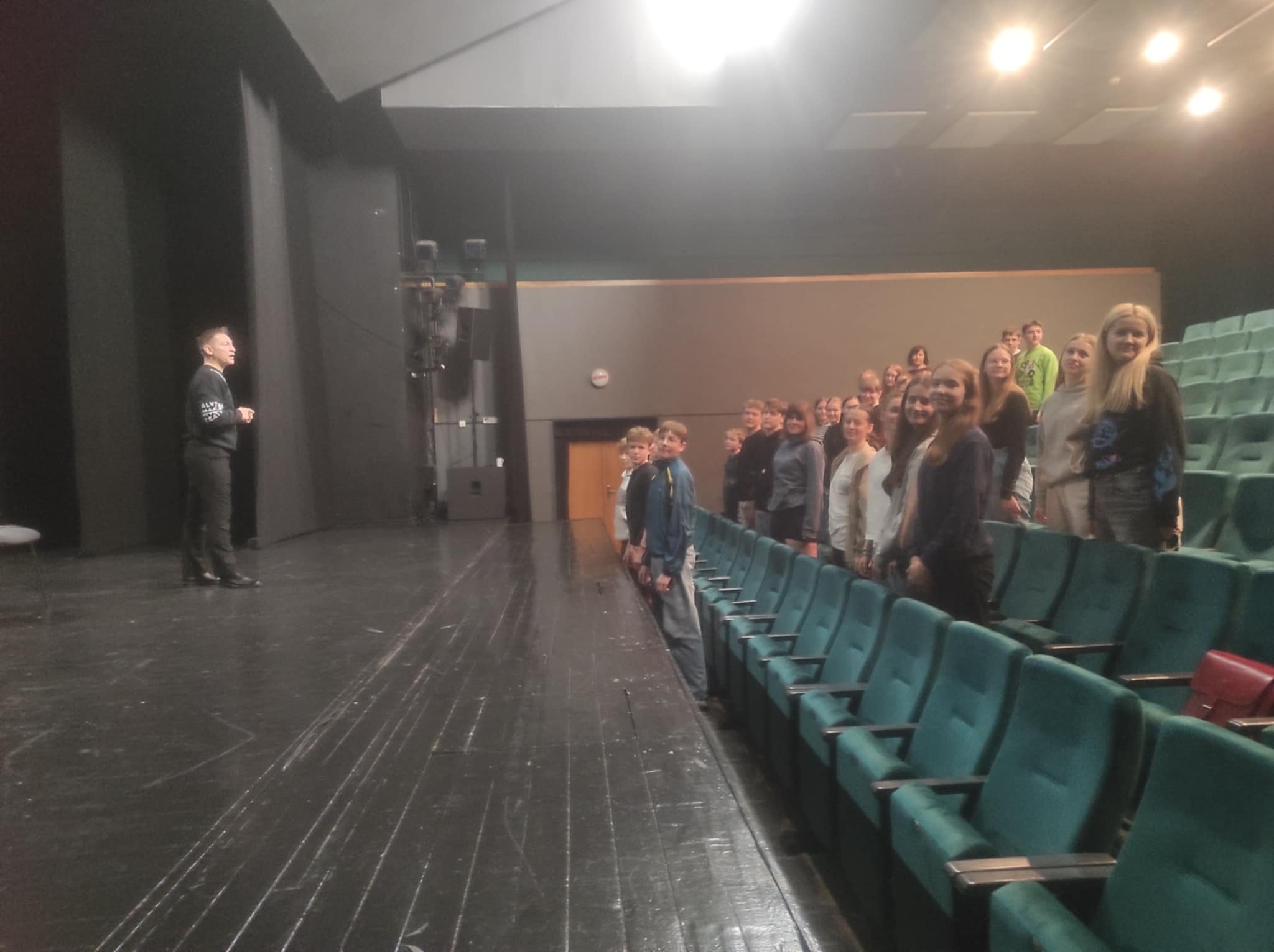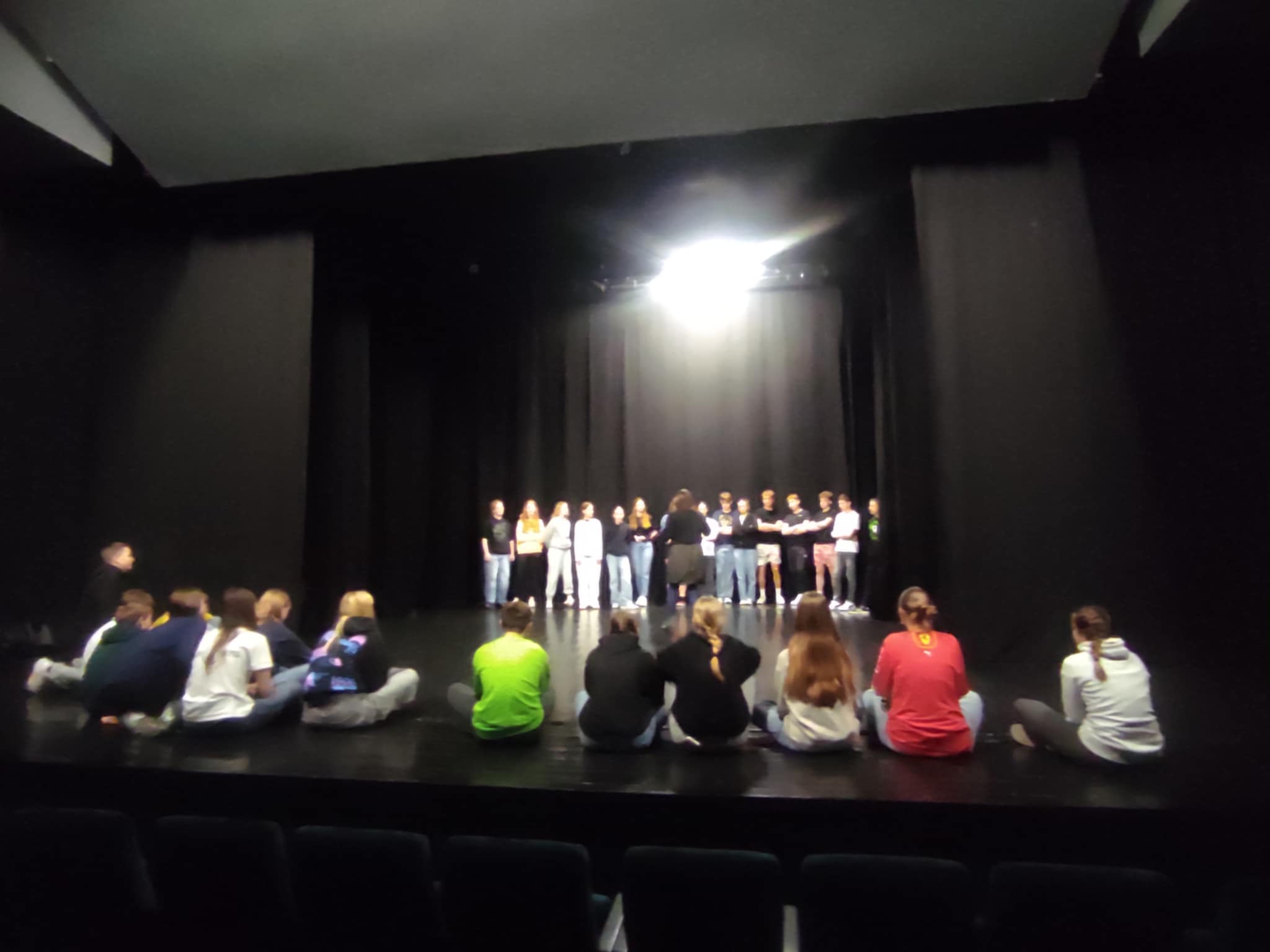 Pradžioje dalyvavome ,,Diskusijų spektaklyje kryžkelėje”. Ten aktoriai atliko dvi etiudas. Mums reikėjo rasti antagonistą ir ištaisyti jo klaidas. Buvo labai smagu. Po to dalyvavome edukaciniuose užsiėmimuose ,,Scenos kalba”. Jų metu sužaidėme grupinius, koncentracijos žaidimus. Turėjome progos sukurti savo trumpus pasirodymus. Užsiėmimai buvo labai įdomūs ir nors trumpam įvedė mus į teatro pasaulį.