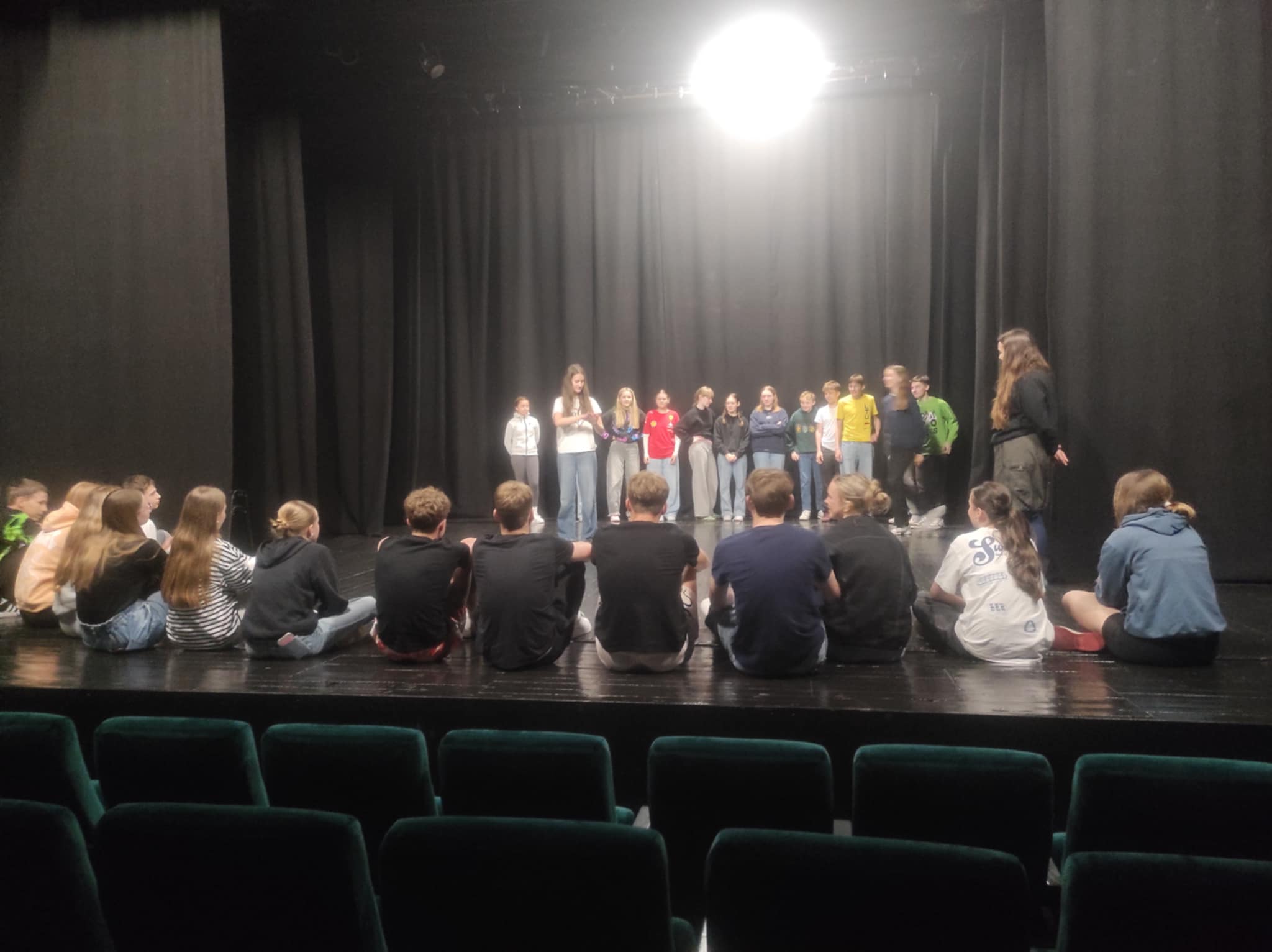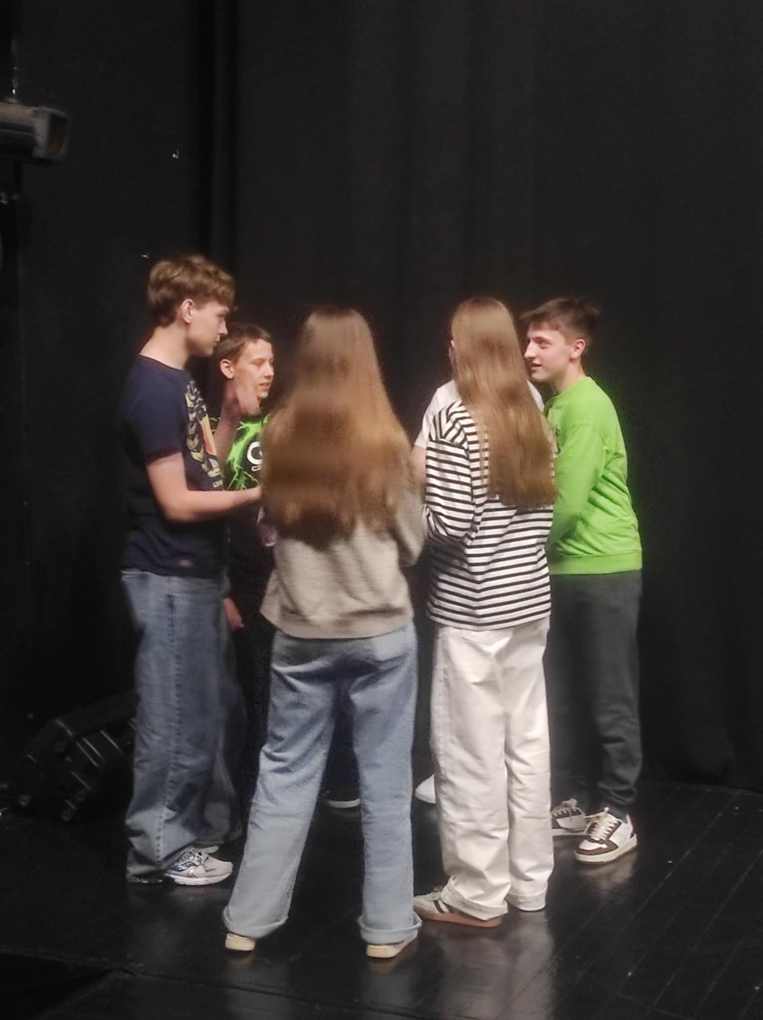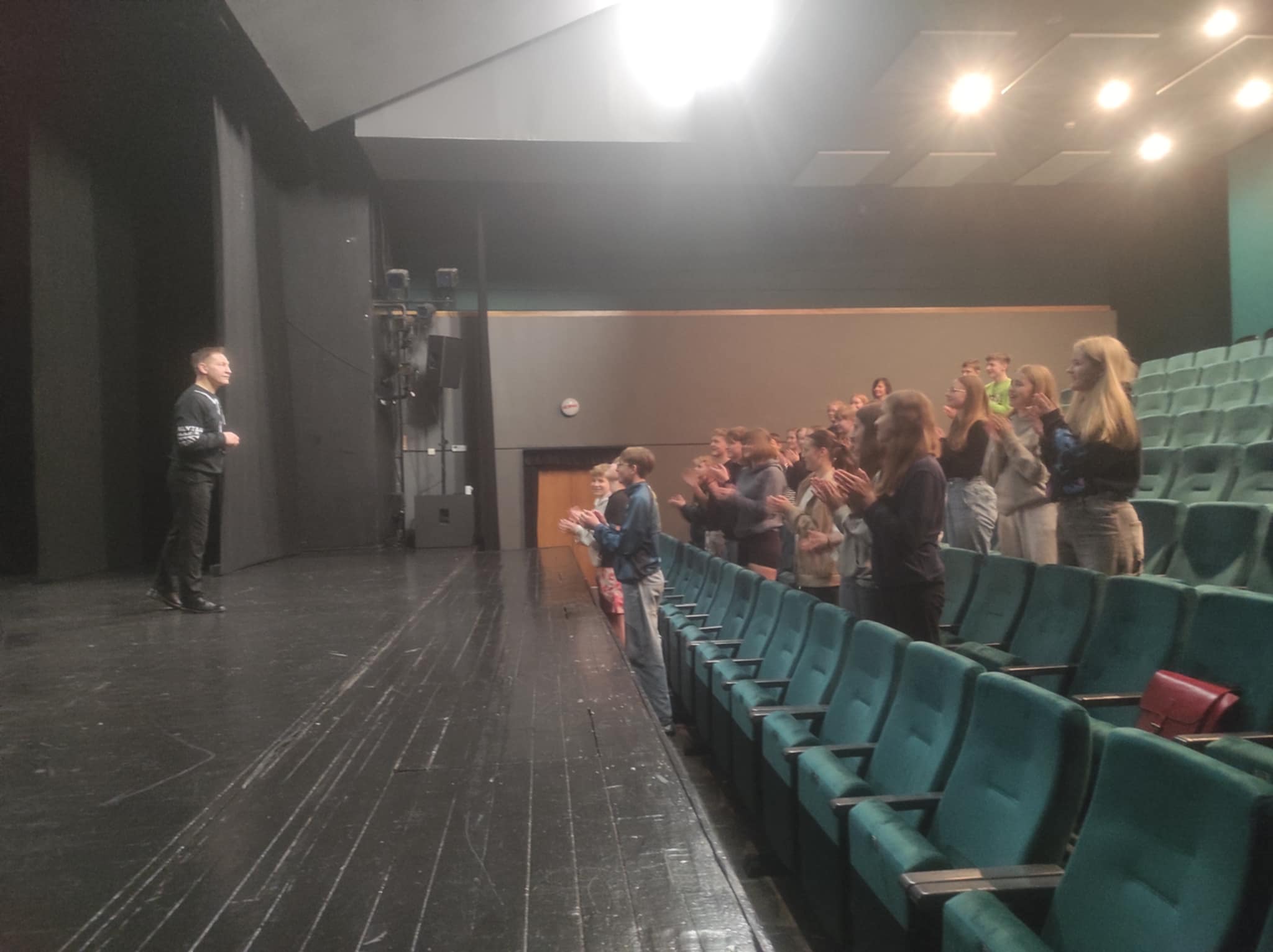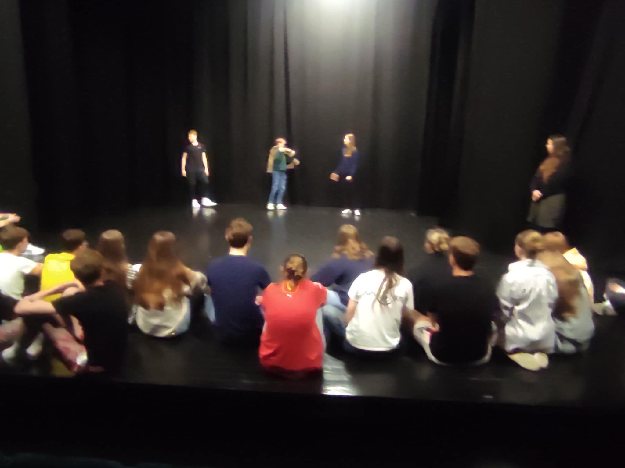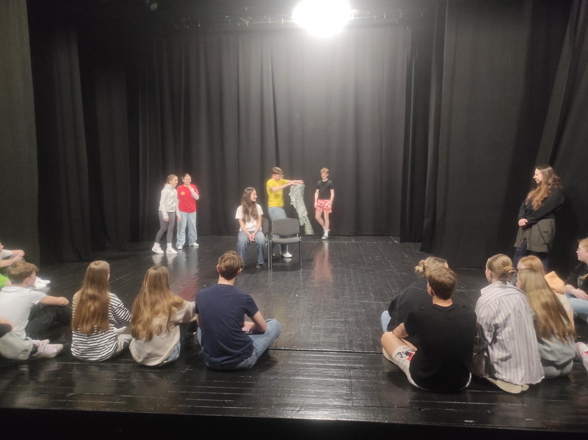 Pradžioje dalyvavome ,,Diskusijų spektaklyje kryžkelėje”. Ten aktoriai atliko dvi etiudas. Mums reikėjo rasti antagonistą ir ištaisyti jo klaidas. Buvo labai smagu. Po to dalyvavome edukaciniuose užsiėmimuose ,,Scenos kalba”. Jų metu sužaidėme grupinius, koncentracijos žaidimus. Turėjome progos sukurti savo trumpus pasirodymus. Užsiėmimai buvo labai įdomūs ir nors trumpam įvedė mus į teatro pasaulį.