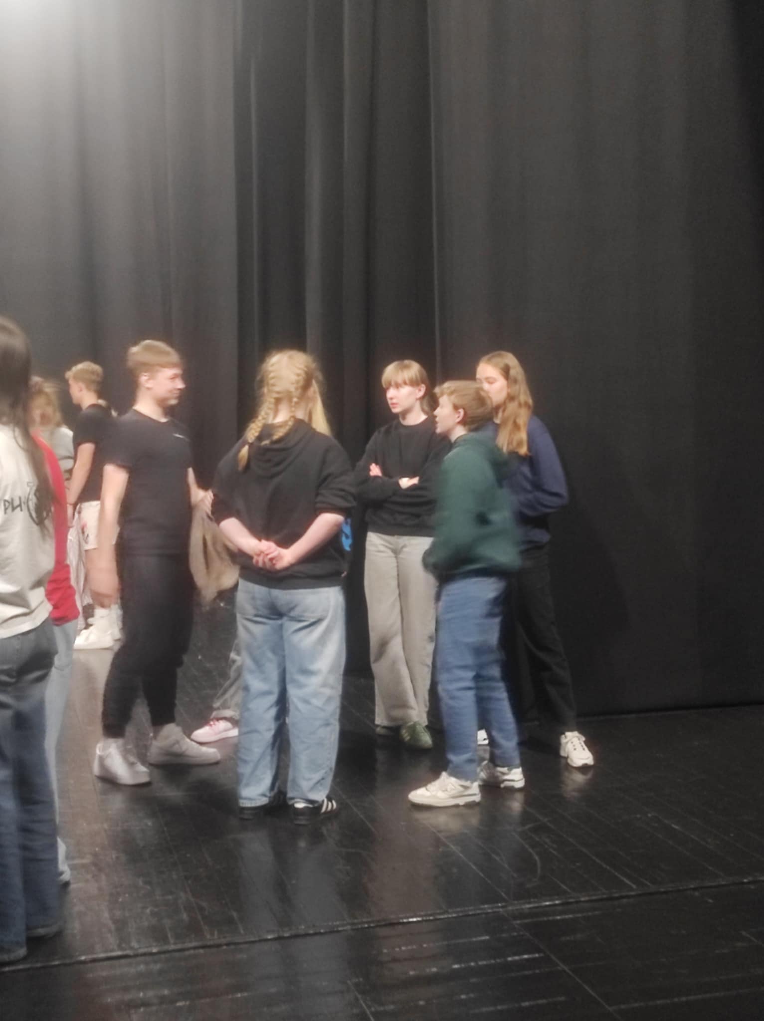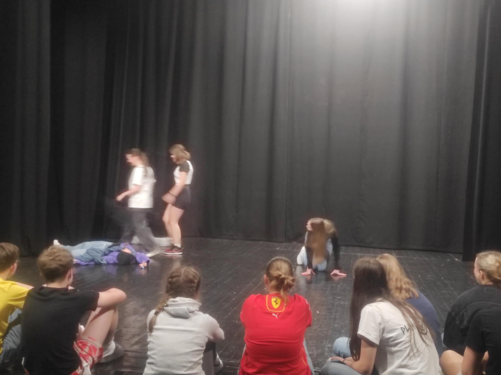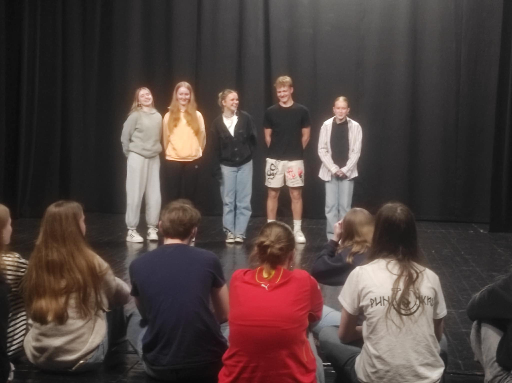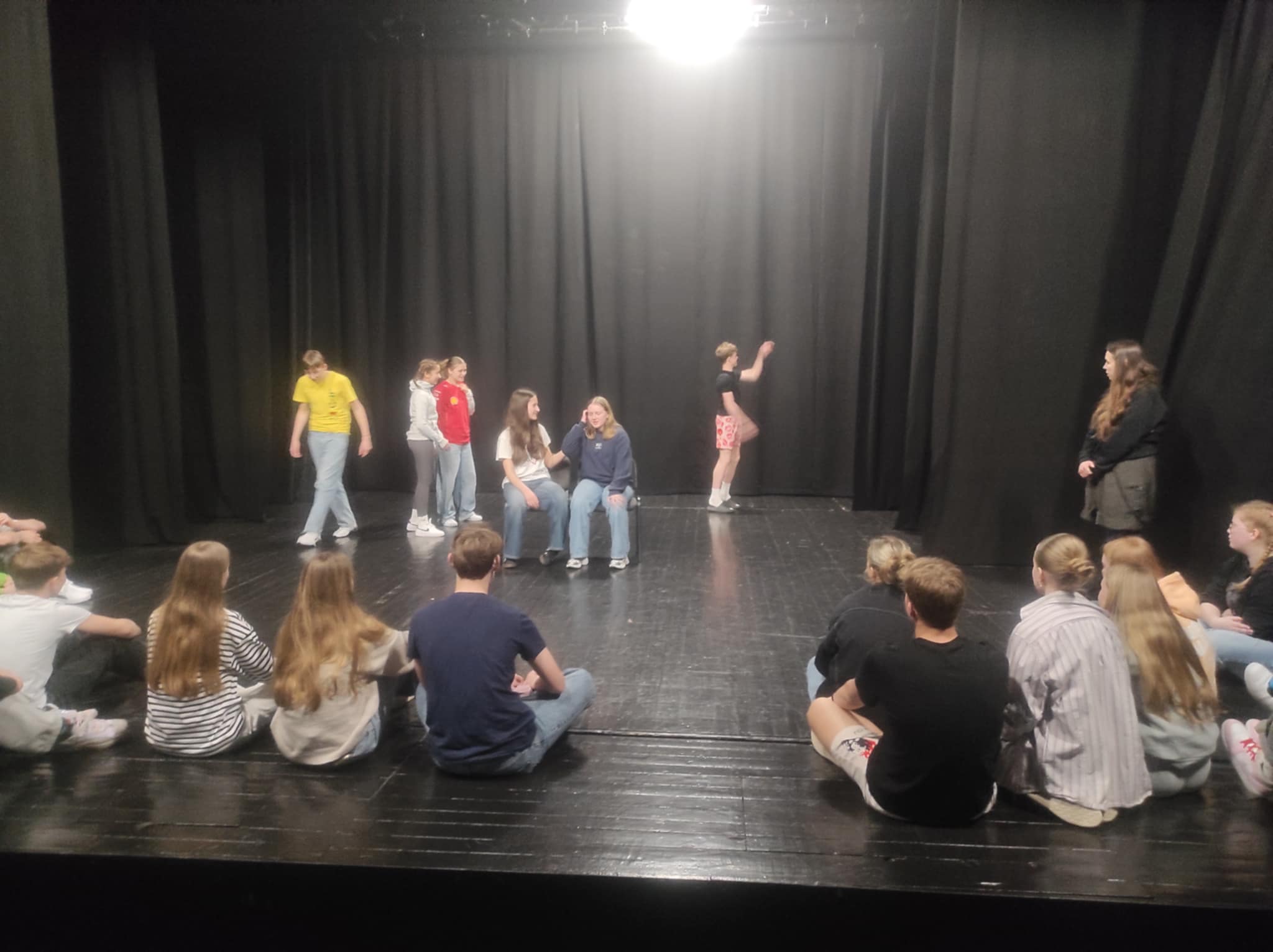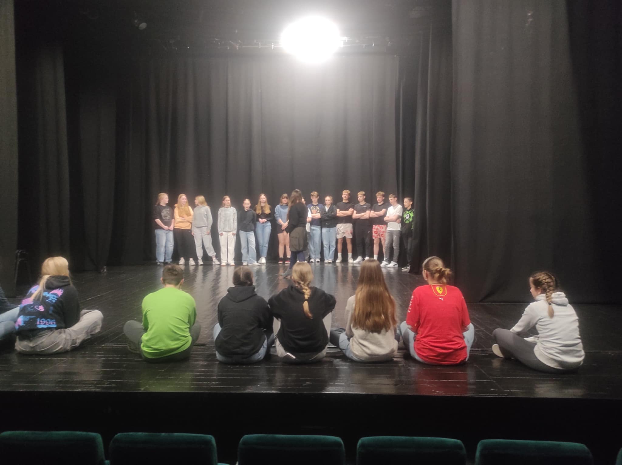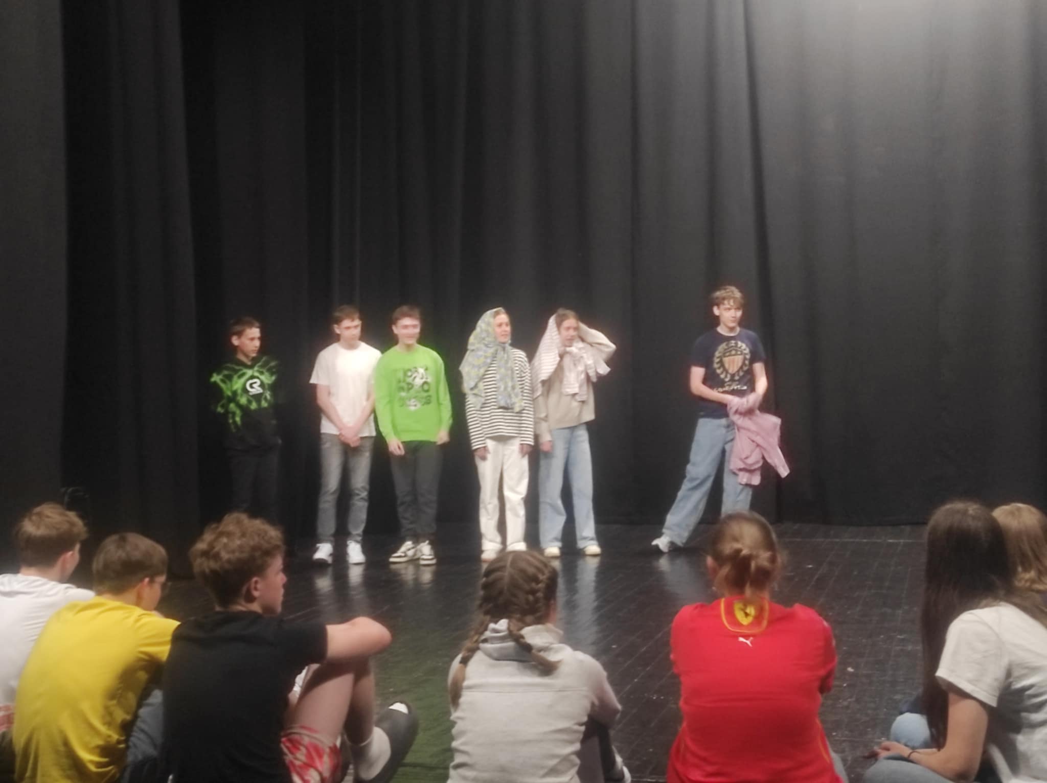 Pradžioje dalyvavome ,,Diskusijų spektaklyje kryžkelėje”. Ten aktoriai atliko dvi etiudas. Mums reikėjo rasti antagonistą ir ištaisyti jo klaidas. Buvo labai smagu. Po to dalyvavome edukaciniuose užsiėmimuose ,,Scenos kalba”. Jų metu sužaidėme grupinius, koncentracijos žaidimus. Turėjome progos sukurti savo trumpus pasirodymus. Užsiėmimai buvo labai įdomūs ir nors trumpam įvedė mus į teatro pasaulį.