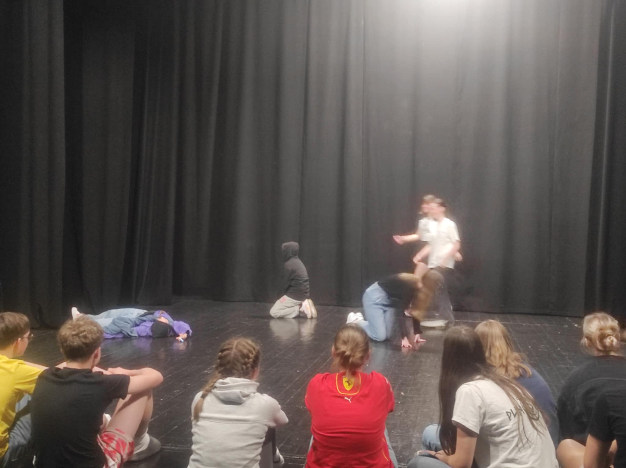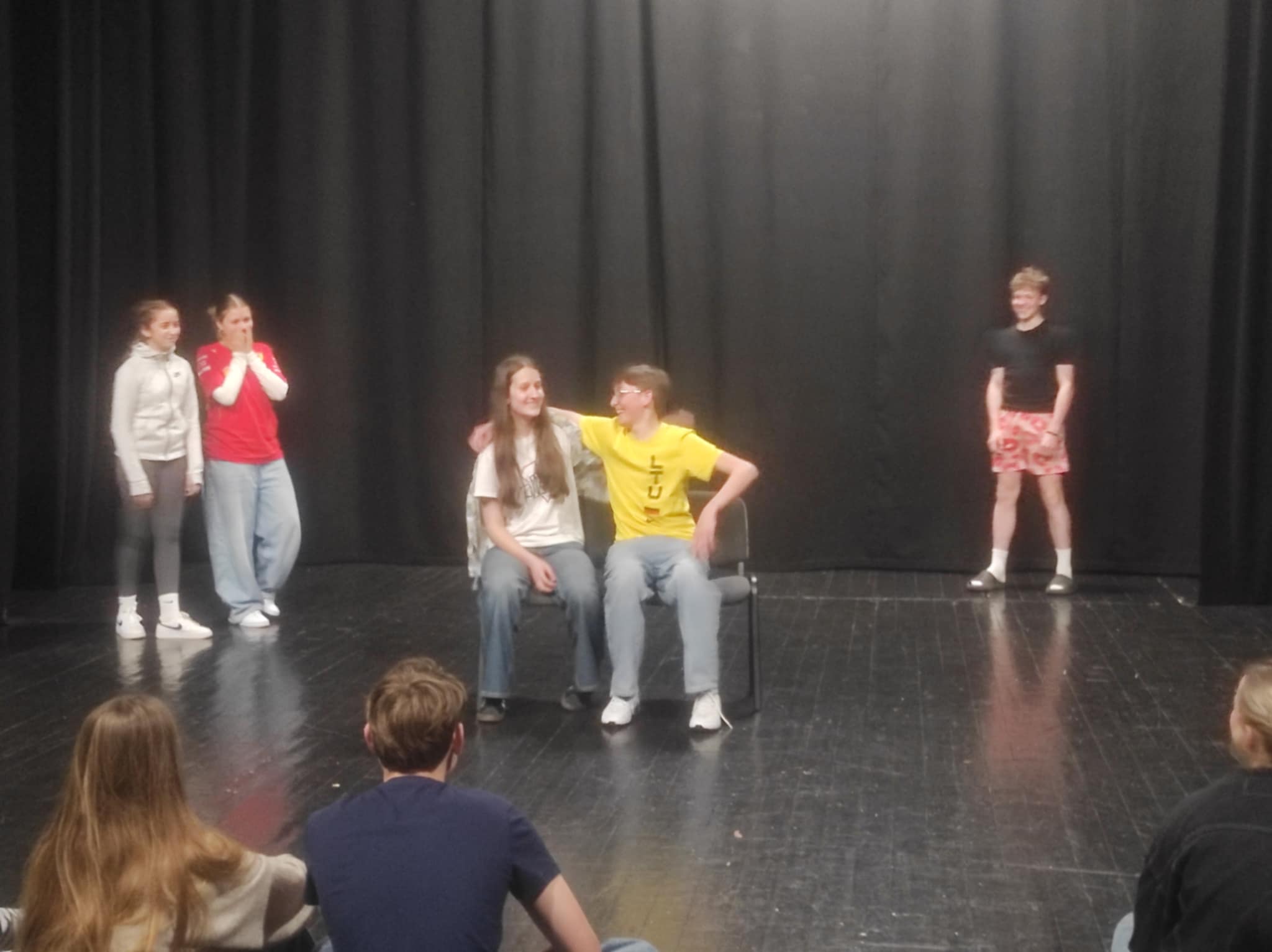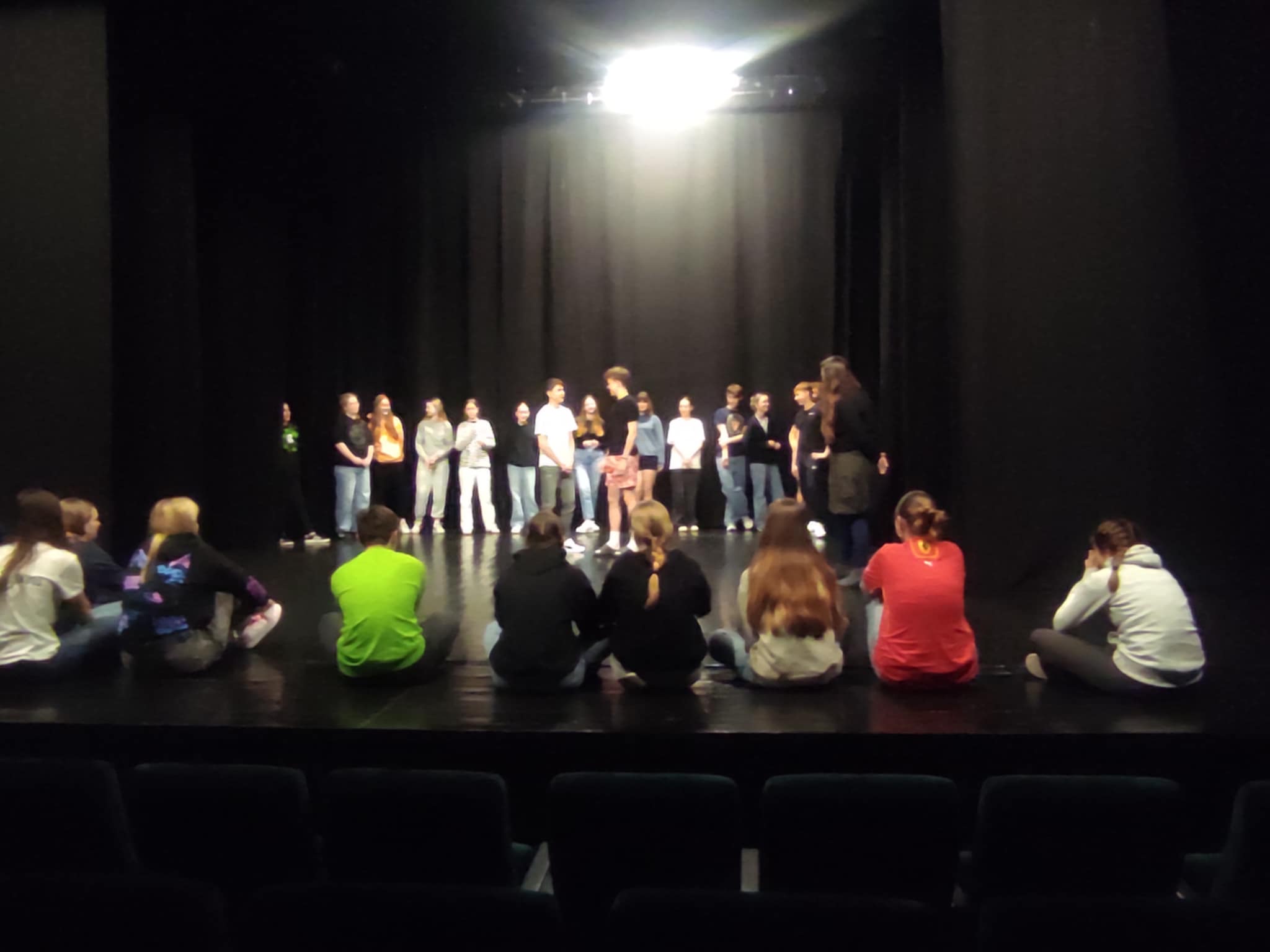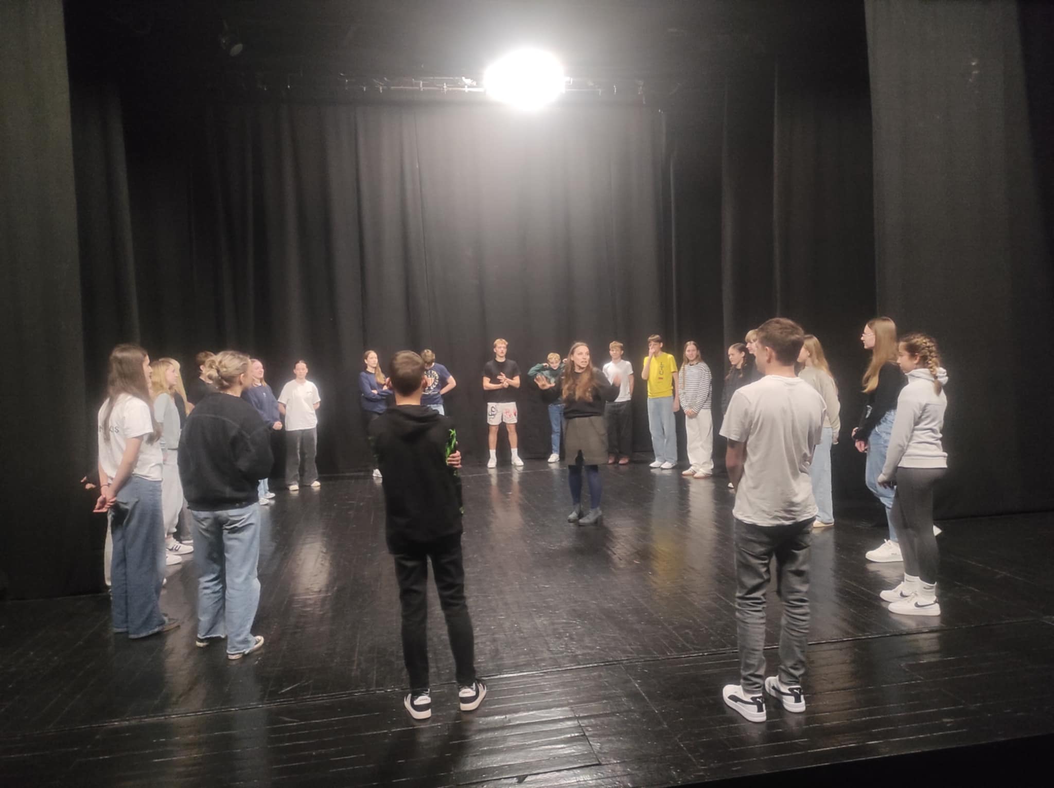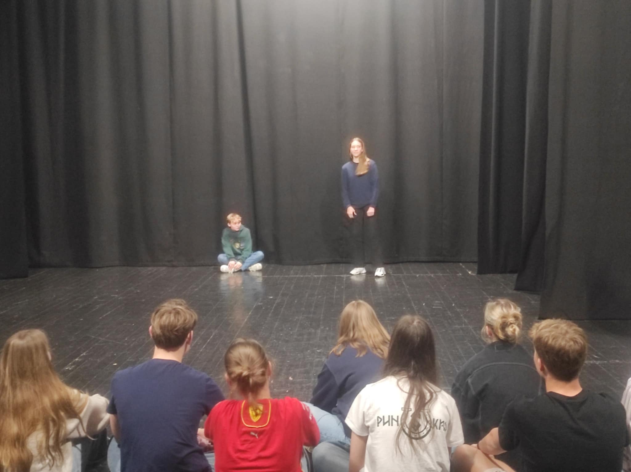 Pradžioje dalyvavome ,,Diskusijų spektaklyje kryžkelėje”. Ten aktoriai atliko dvi etiudas. Mums reikėjo rasti antagonistą ir ištaisyti jo klaidas. Buvo labai smagu. Po to dalyvavome edukaciniuose užsiėmimuose ,,Scenos kalba”. Jų metu sužaidėme grupinius, koncentracijos žaidimus. Turėjome progos sukurti savo trumpus pasirodymus. Užsiėmimai buvo labai įdomūs ir nors trumpam įvedė mus į teatro pasaulį.