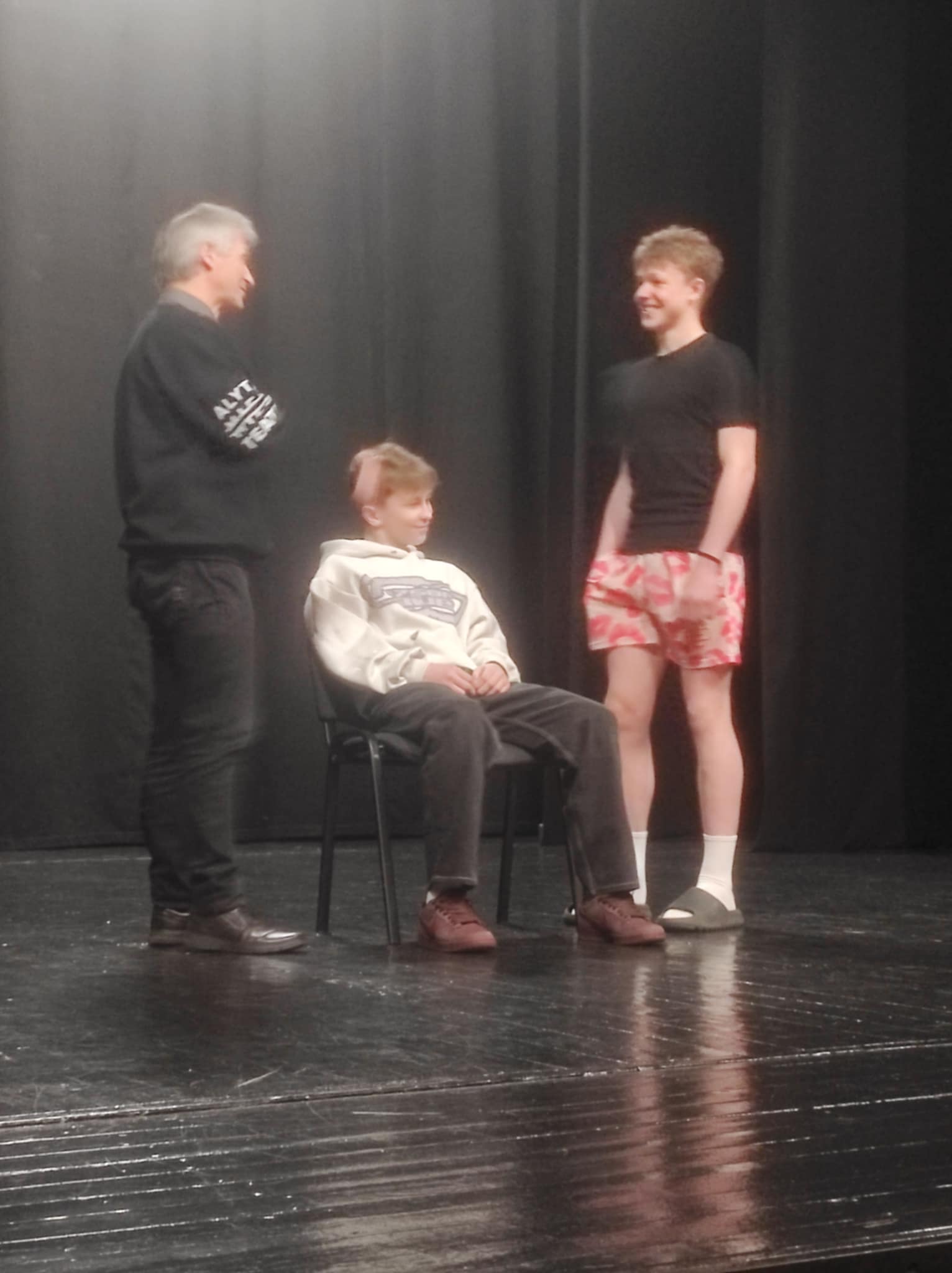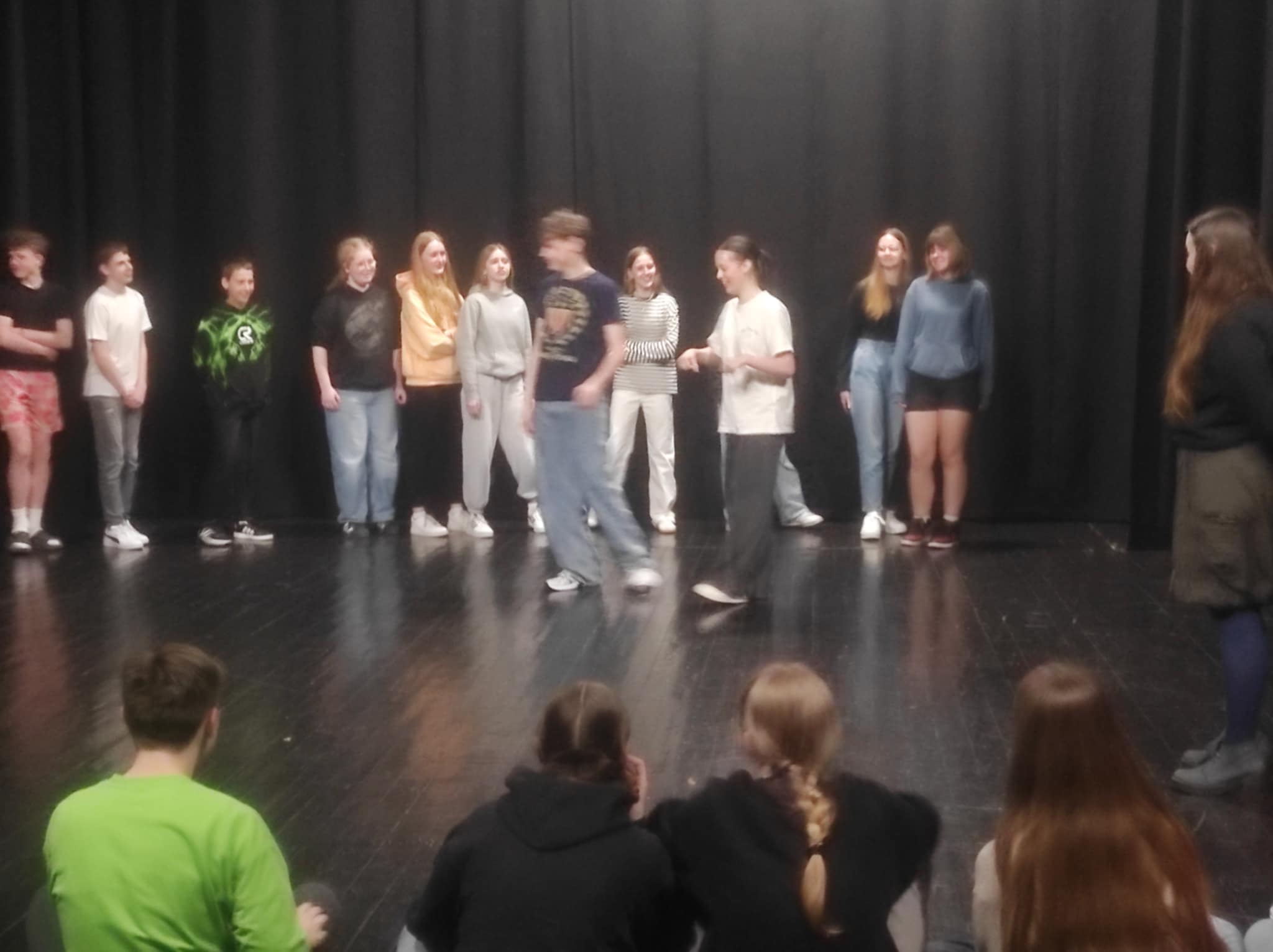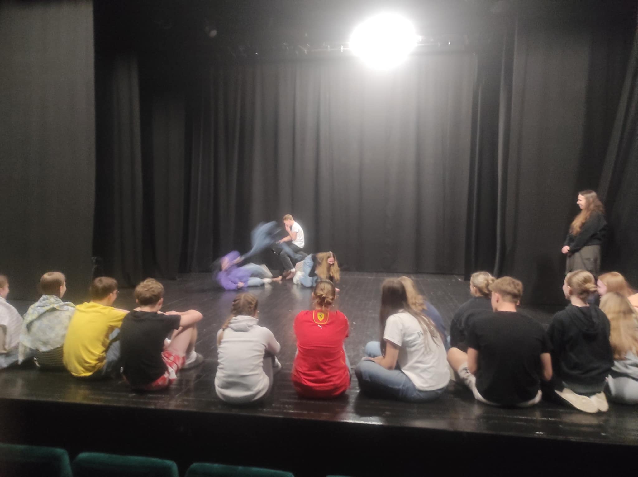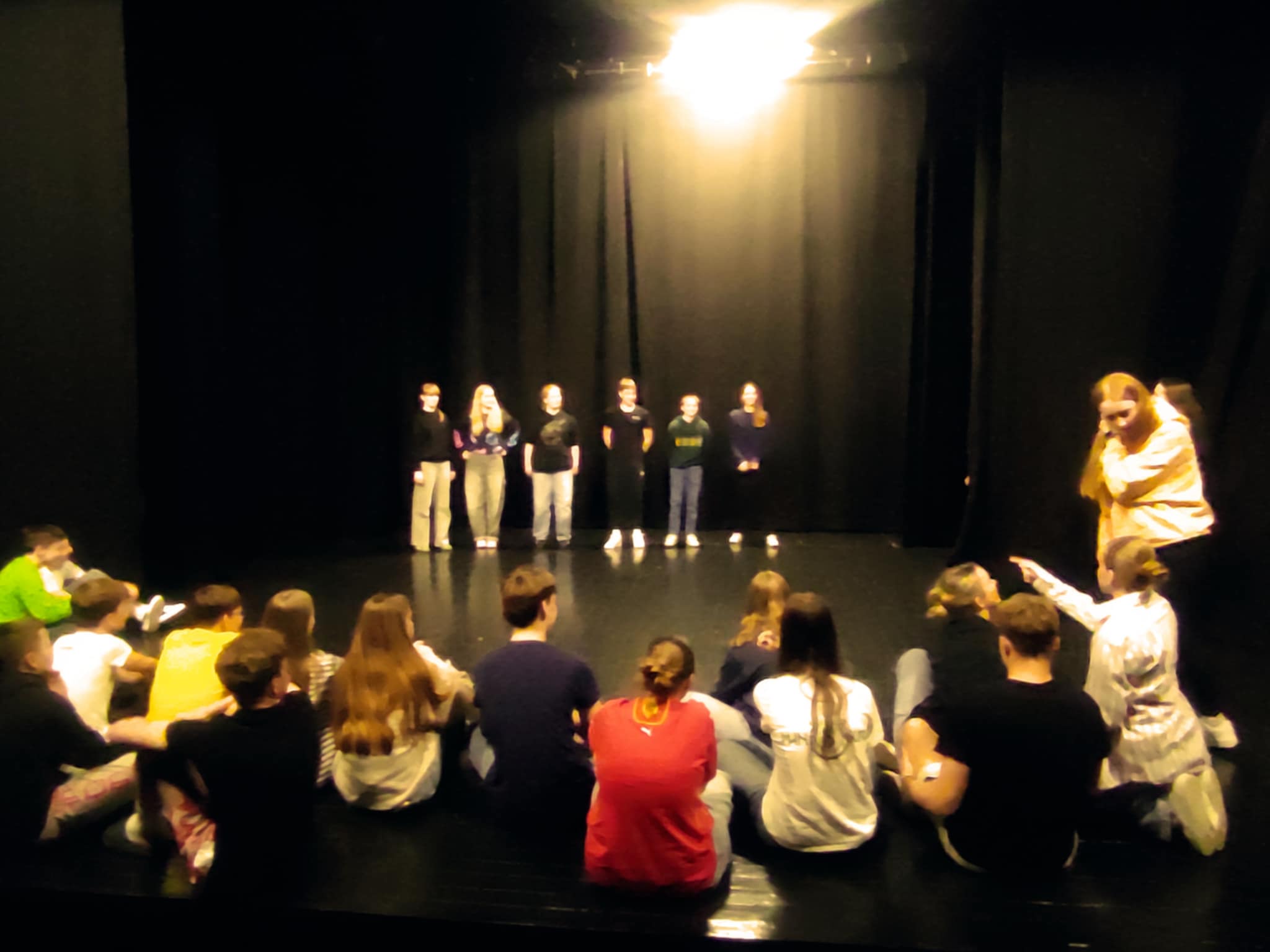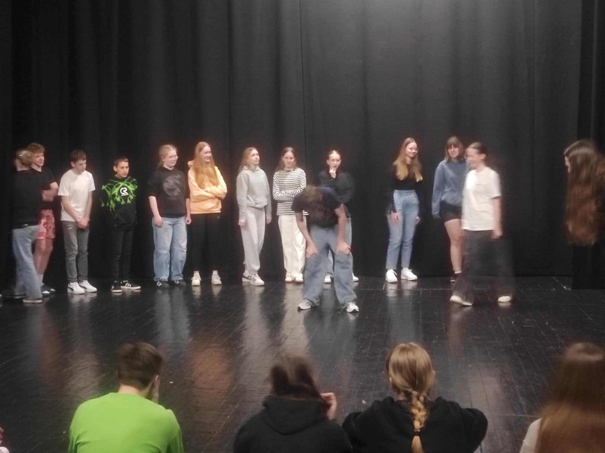 Pradžioje dalyvavome ,,Diskusijų spektaklyje kryžkelėje”. Ten aktoriai atliko dvi etiudas. Mums reikėjo rasti antagonistą ir ištaisyti jo klaidas. Buvo labai smagu. Po to dalyvavome edukaciniuose užsiėmimuose ,,Scenos kalba”. Jų metu sužaidėme grupinius, koncentracijos žaidimus. Turėjome progos sukurti savo trumpus pasirodymus. Užsiėmimai buvo labai įdomūs ir nors trumpam įvedė mus į teatro pasaulį.
