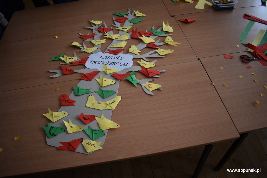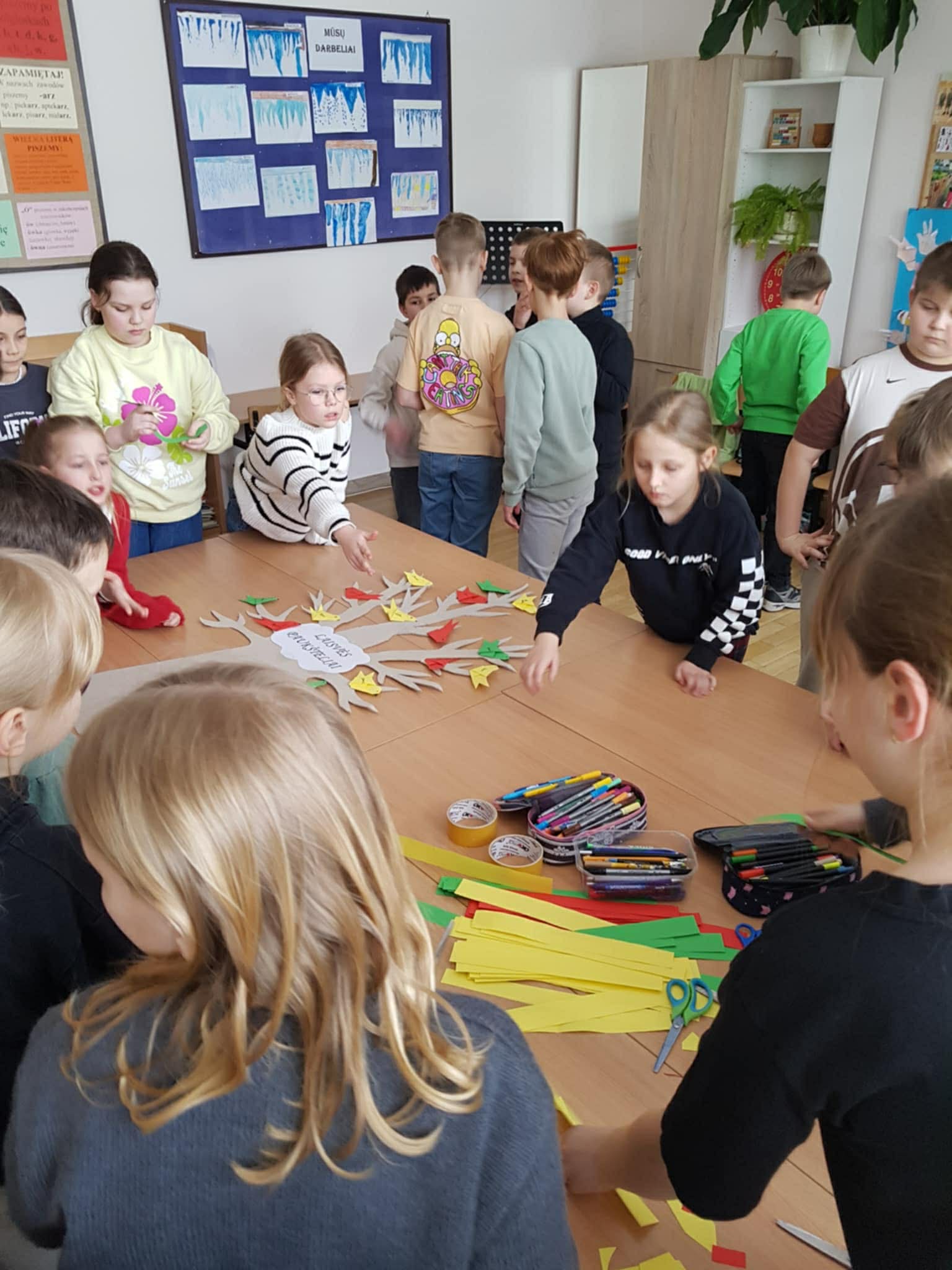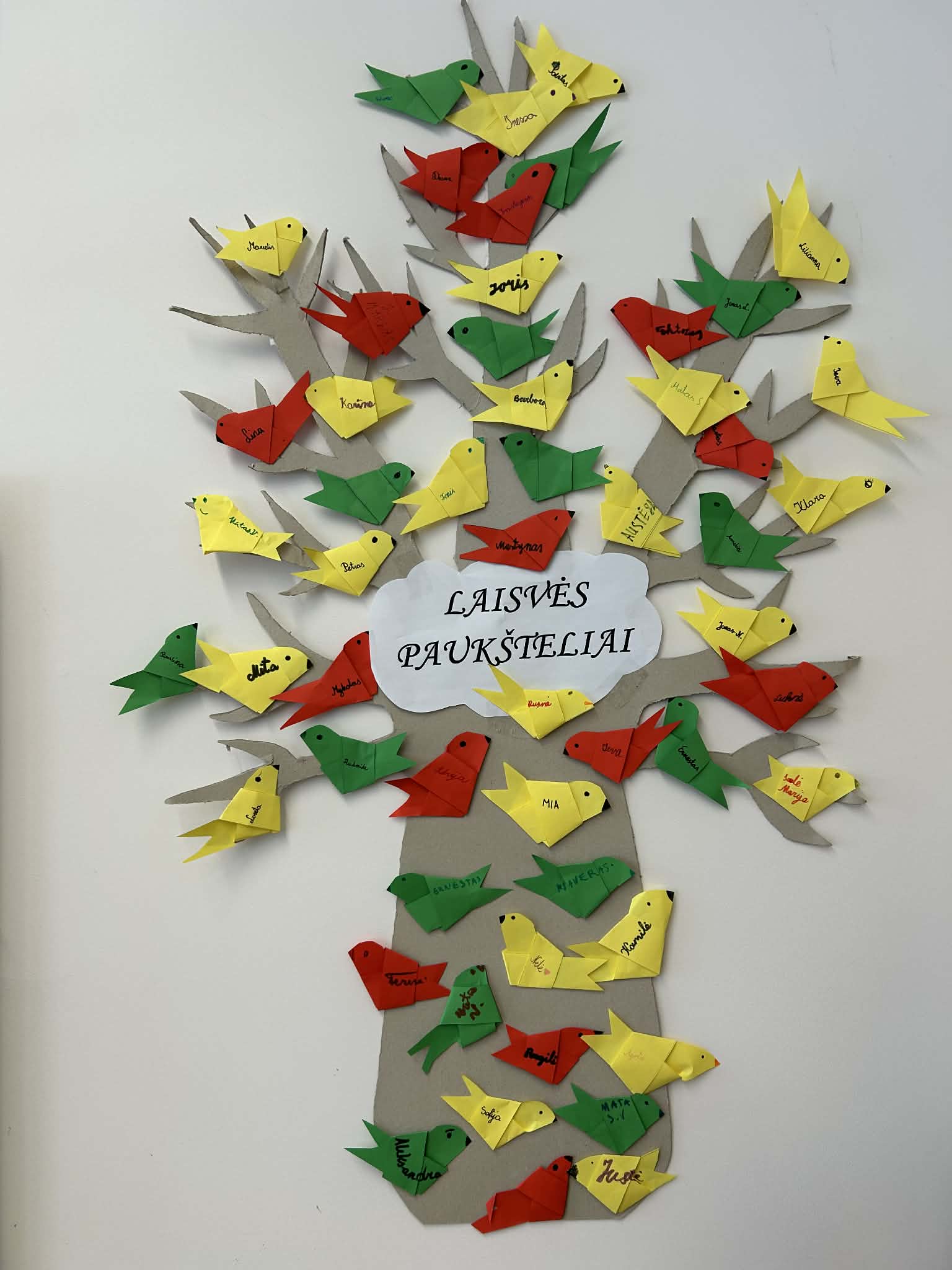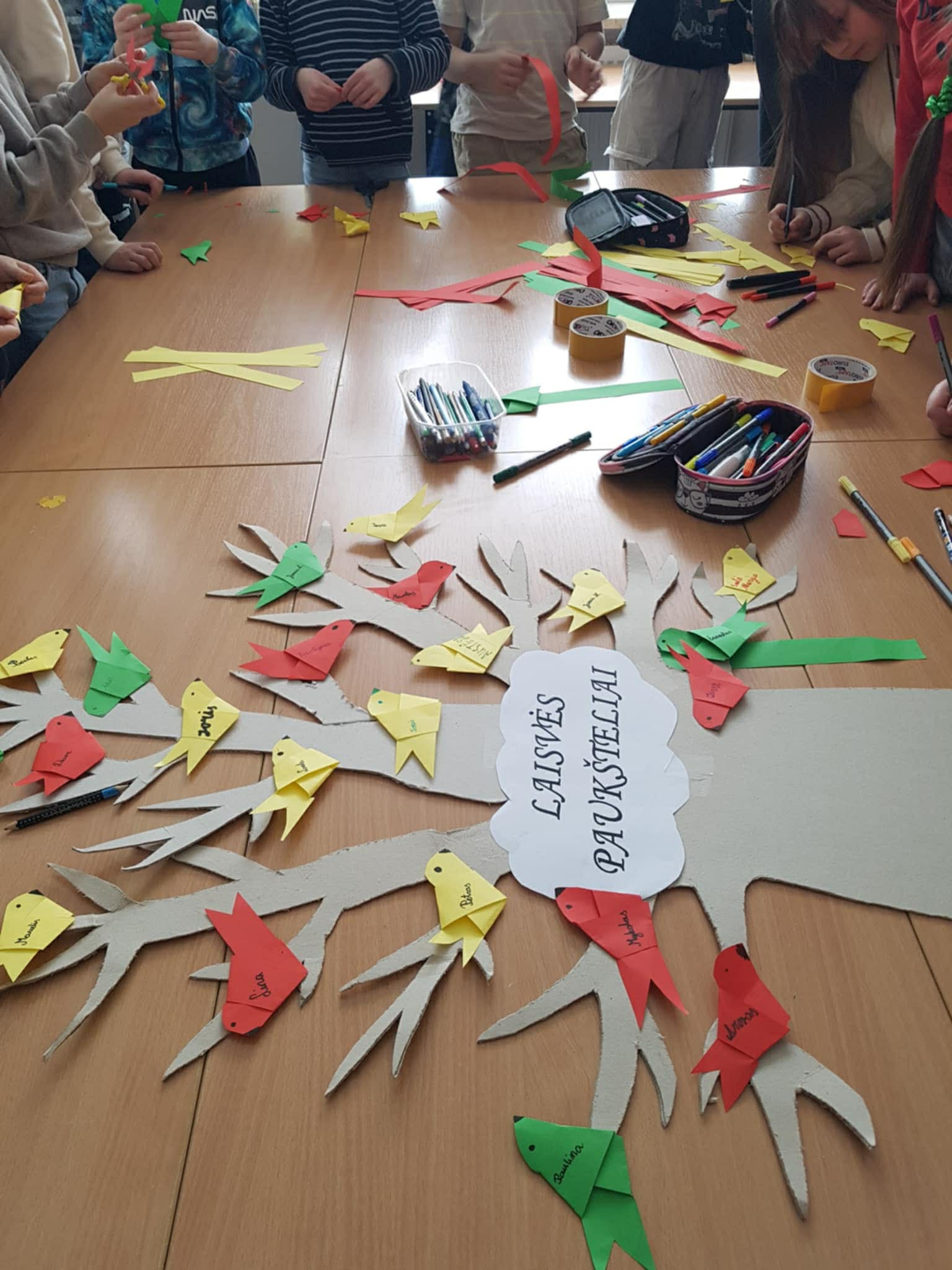 Po spektaklio svečiai kartu su mūsų mokyklos trečiokėliais dalyvavo integraciniuose užsiėmimuose. Kūrybinės veiklos metu jie gamino „Laisvės paukštelius“, papuoštus Lietuvos trispalvės spalvomis – geltona, žalia ir raudona. Vėliau visi paukšteliai „sutūpė“ ant simbolinio medžio, tapdami gražiu laisvės, draugystės ir bendrystės simboliu.